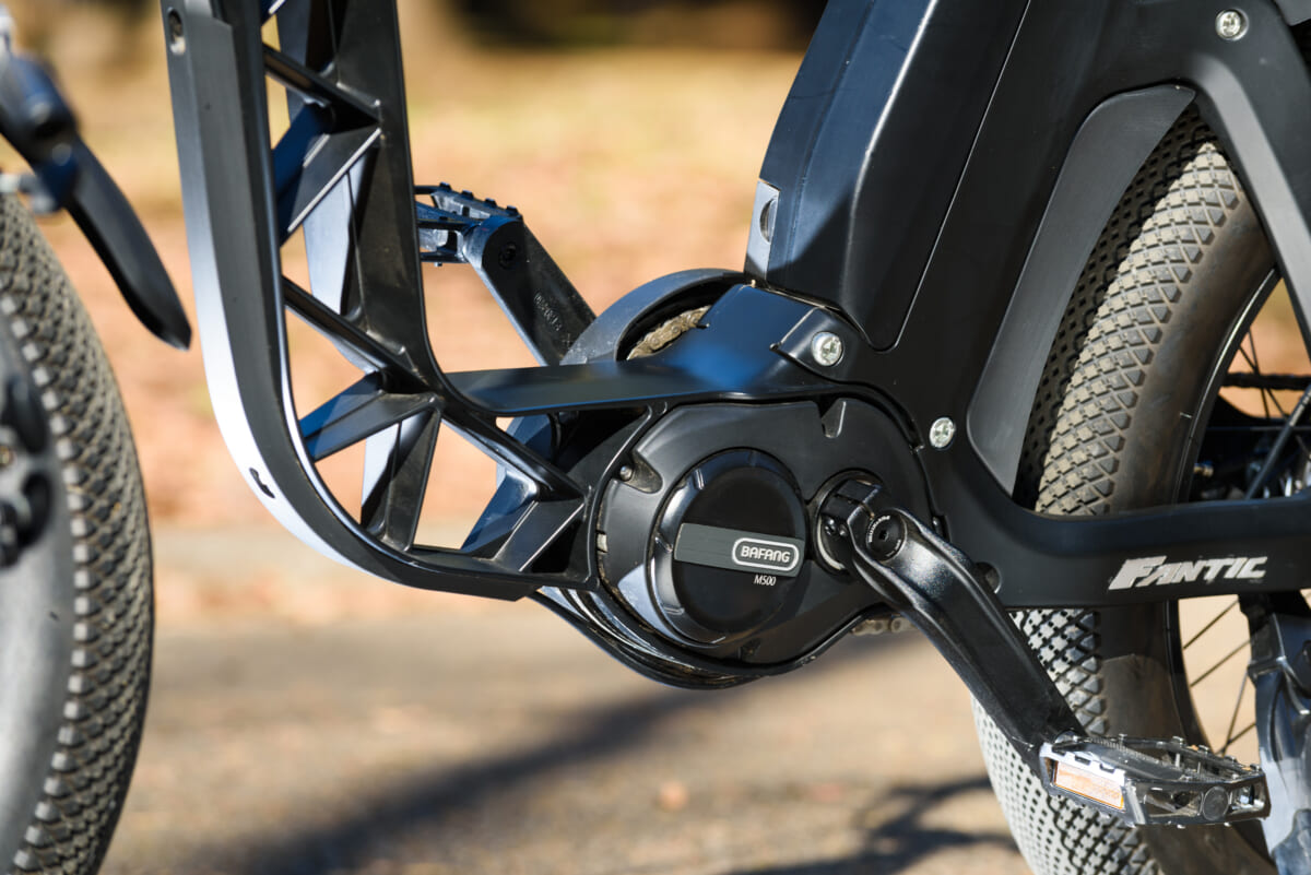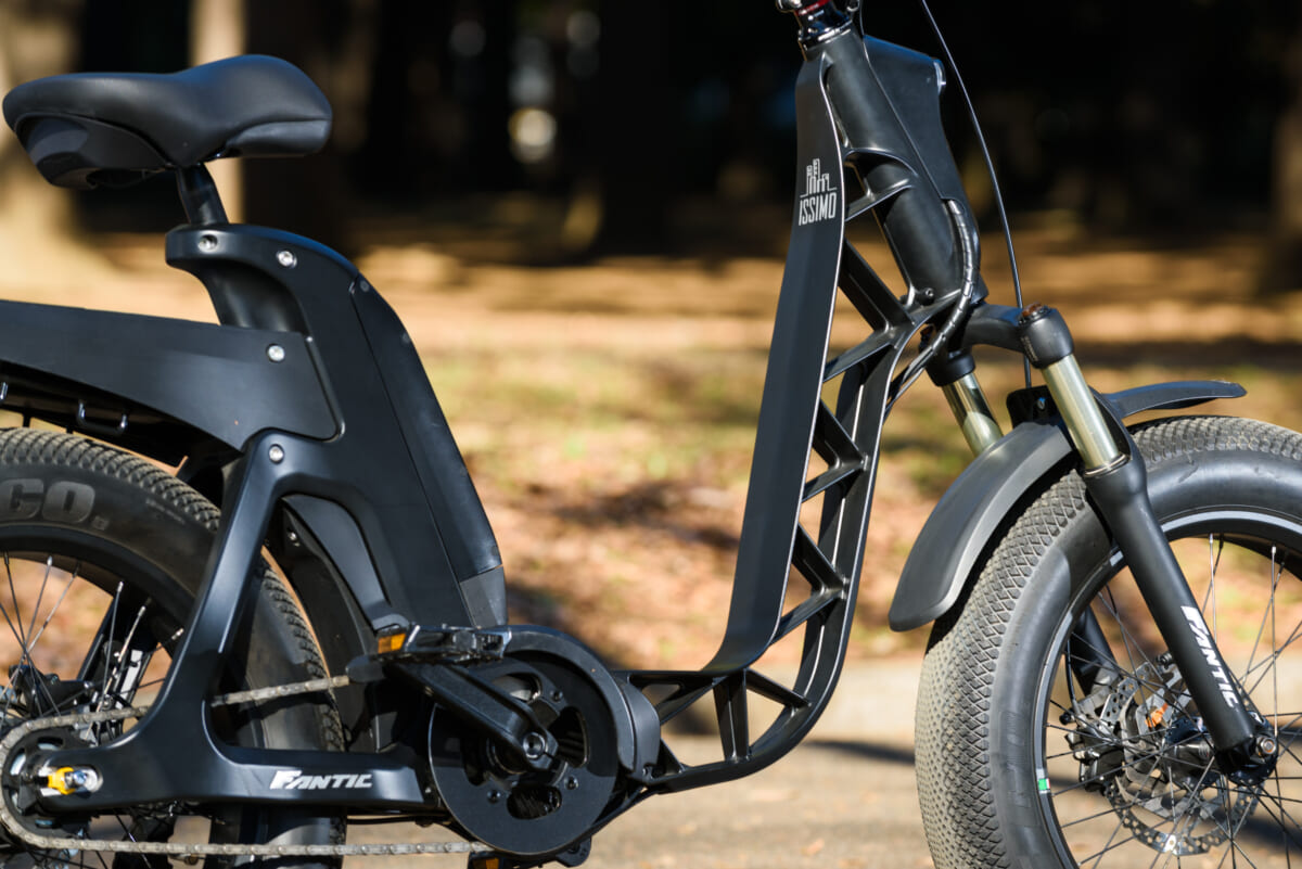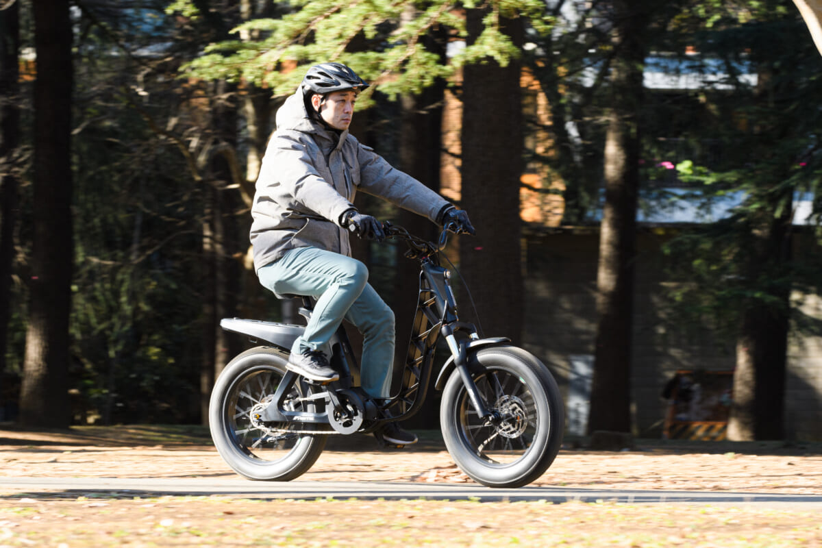 重量級の車体ながら軽快に進むのは、BAFANG製の「M500」ユニットが80Nmとスポーツモデル並みのトルクを発揮できる性能を持っているから。ペダルを踏み込むというより回すような感覚ですが、これにはセットされているクランクが短いことも効いていると感じました。少ない動きでペダルを回せるので、脚の筋肉をほとんど使わずに進んでいくような気分です。