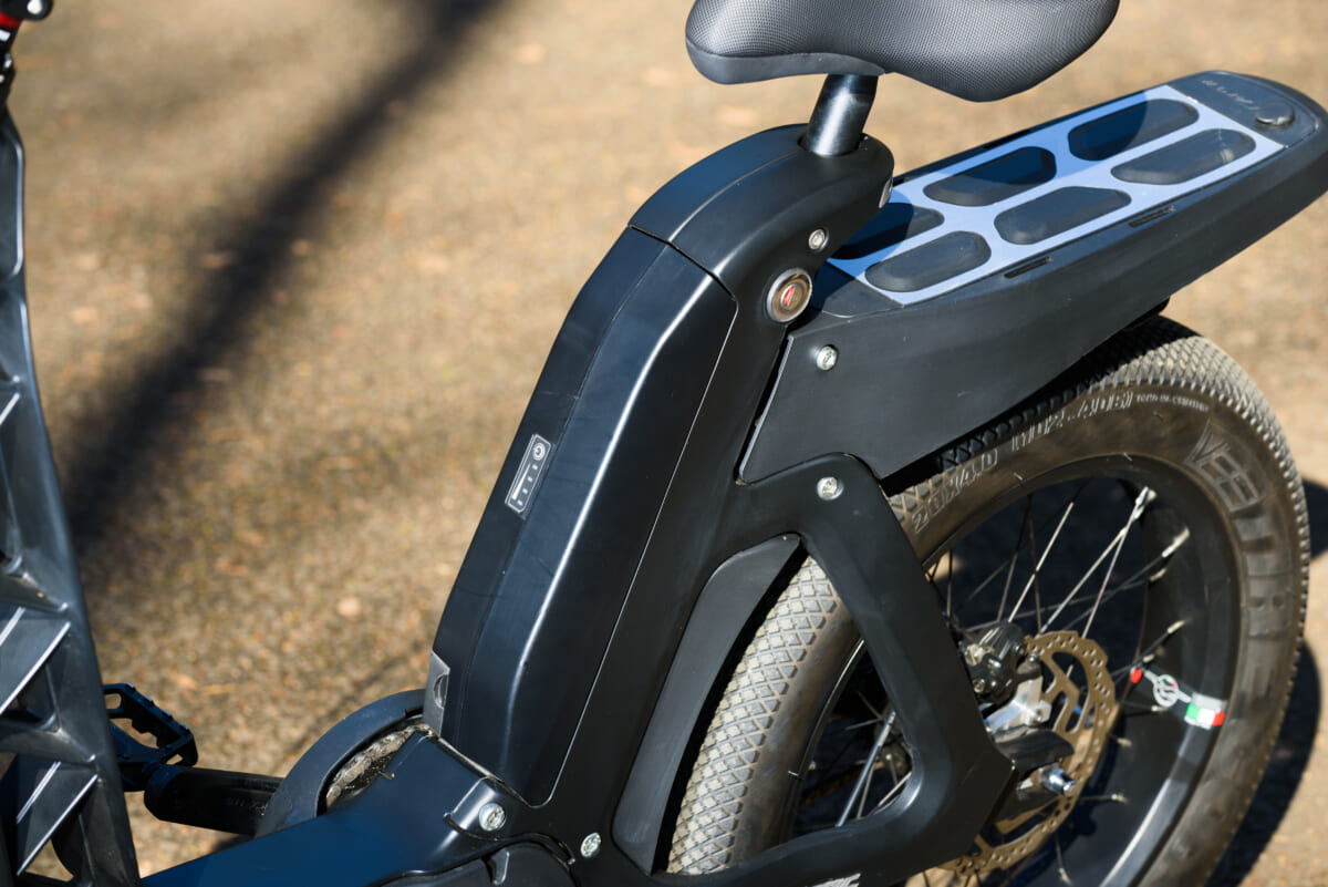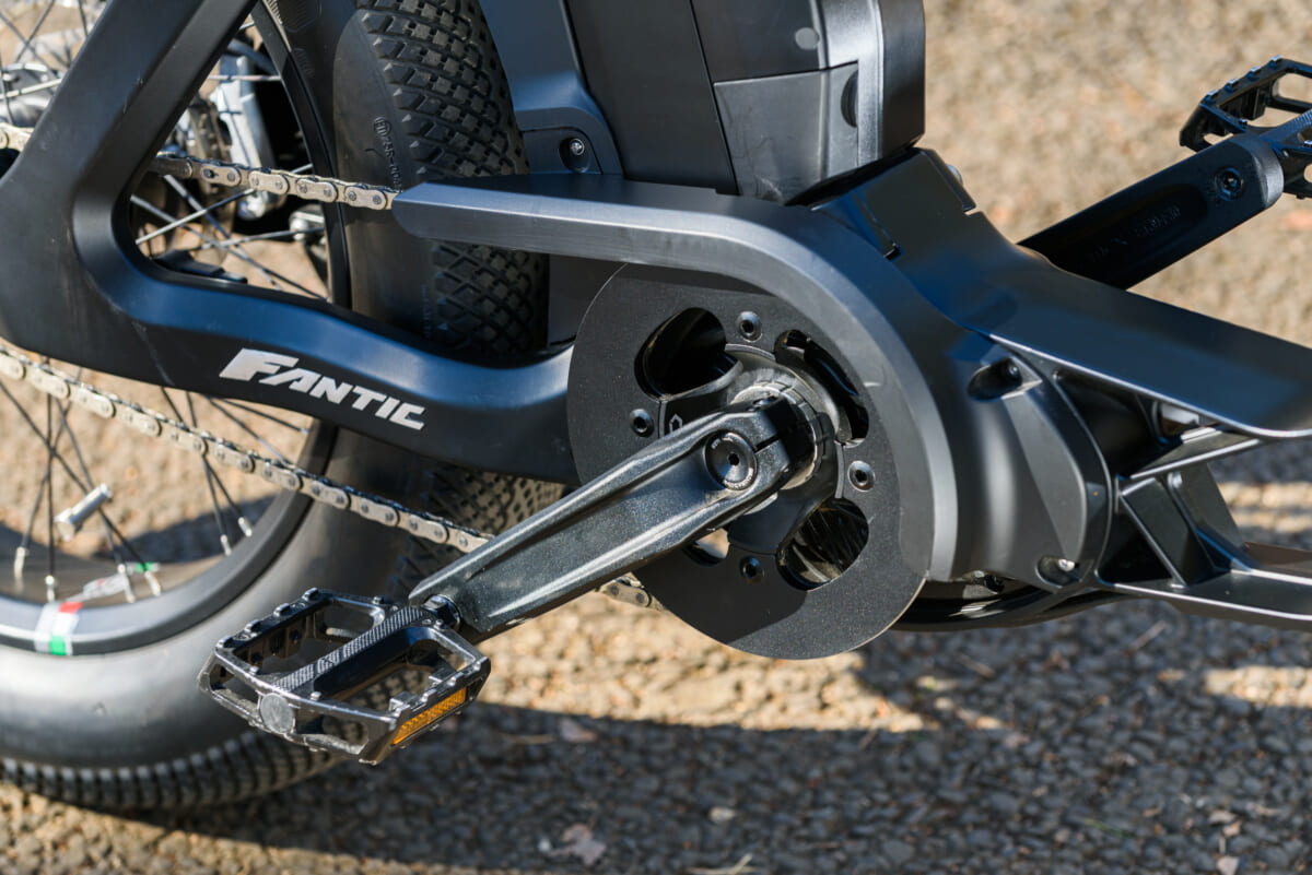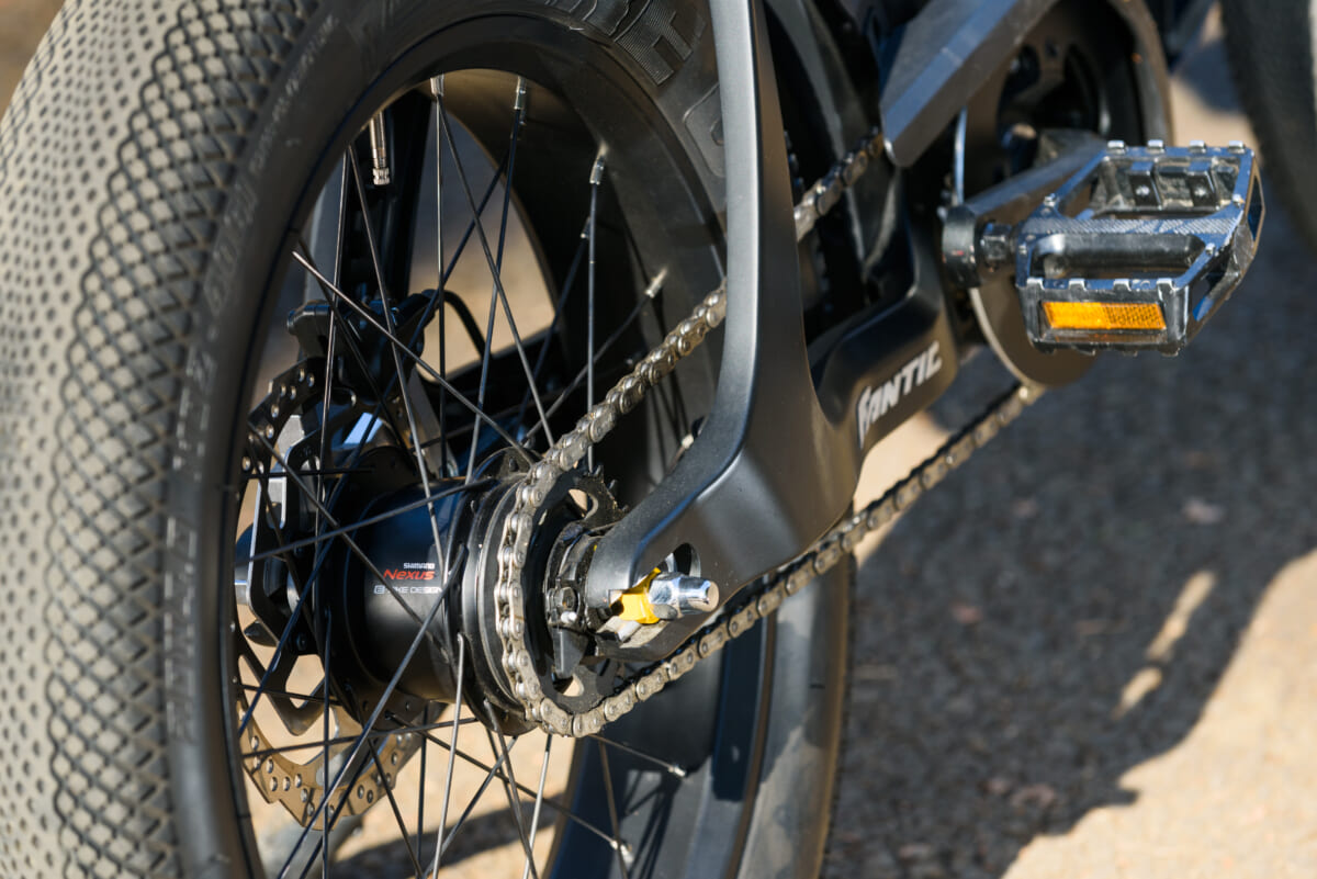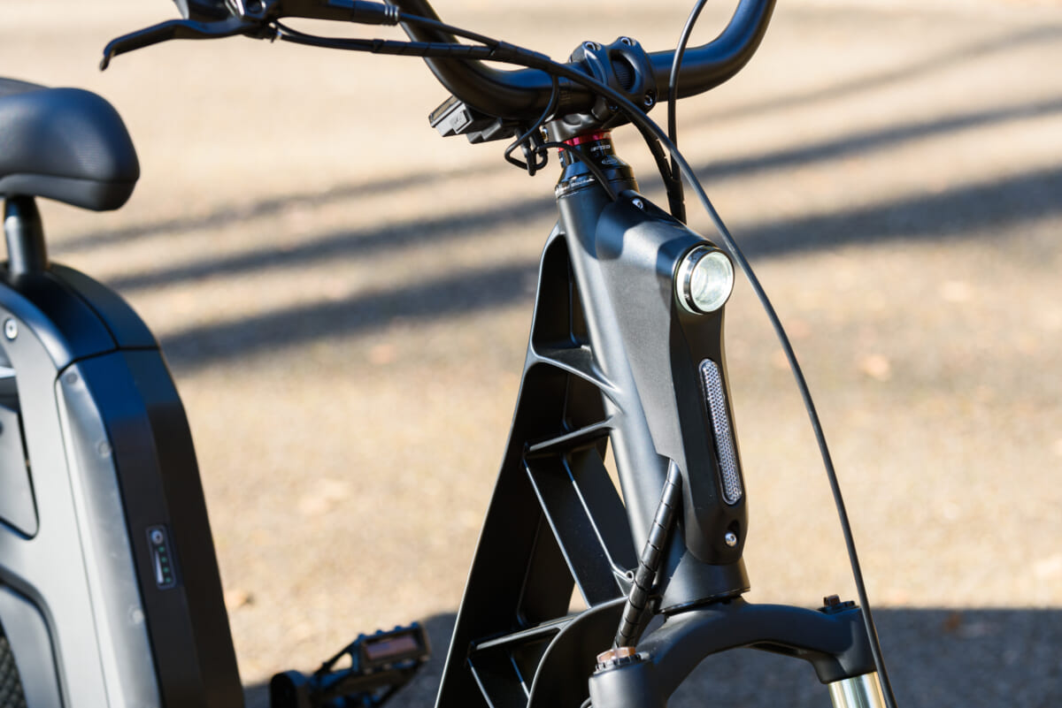 重量級の車体ながら軽快に進むのは、BAFANG製の「M500」ユニットが80Nmとスポーツモデル並みのトルクを発揮できる性能を持っているから。ペダルを踏み込むというより回すような感覚ですが、これにはセットされているクランクが短いことも効いていると感じました。少ない動きでペダルを回せるので、脚の筋肉をほとんど使わずに進んでいくような気分です。