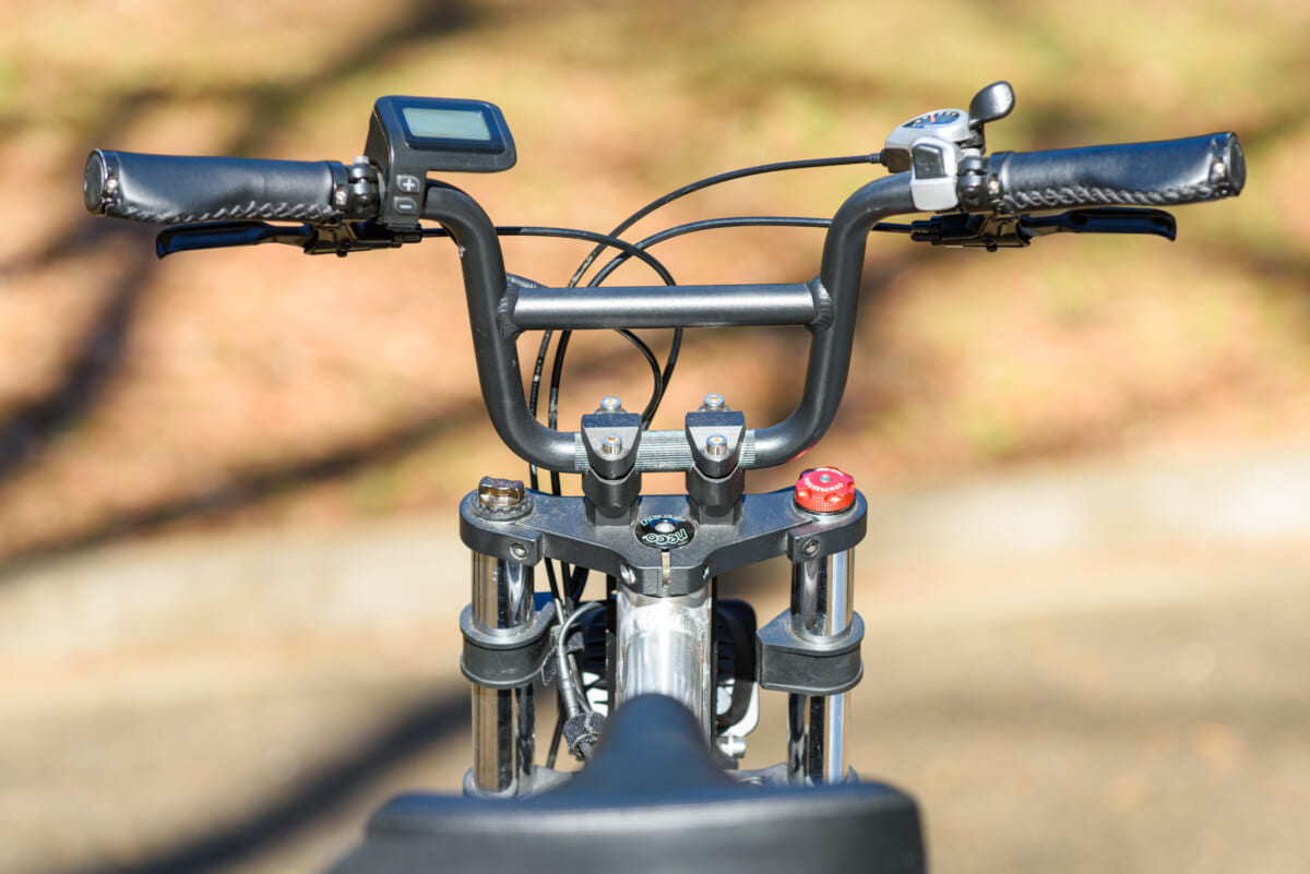 BMX風のスタイルは軽快感がありますが、重量は31.8kgと重めです。上体が起きたライディングポジションで、シートもどっかりと座るタイプなので、跨ってみるとBMXというよりクルーザー的な雰囲気。アシストは力強いですが、ペダルをガンガン踏んでいくというよりは、ゆっくり流すような走り方が合っています。