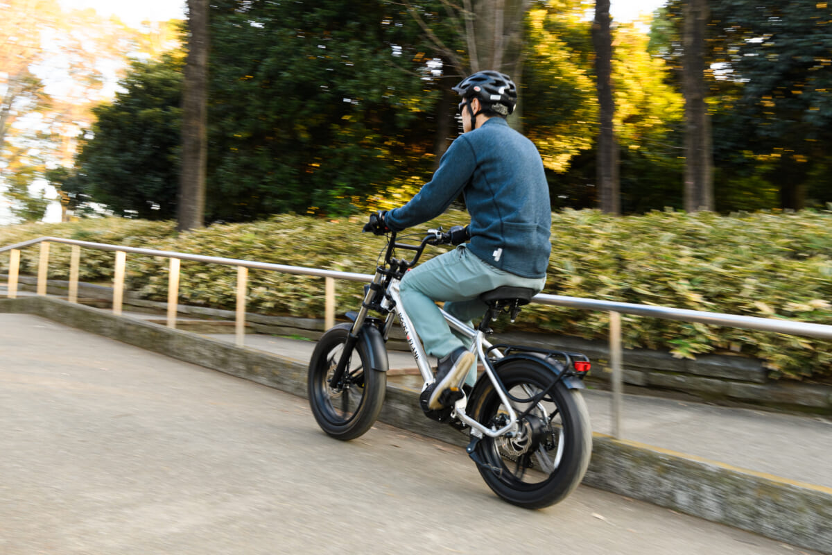 乗り味はBMXというよりクルーザー的なものでしたが、極太のタイヤで街中を流すのはかなり気持ちいい。アシストなしで、このタイヤと重量となるとかなり足に負担となりそうですが、e-Bikeだと全く苦になることなく走れるのも新鮮です。このスタイルはかなり人目を集めるので、人とは違った乗り物で目立ちたい人におすすめです。