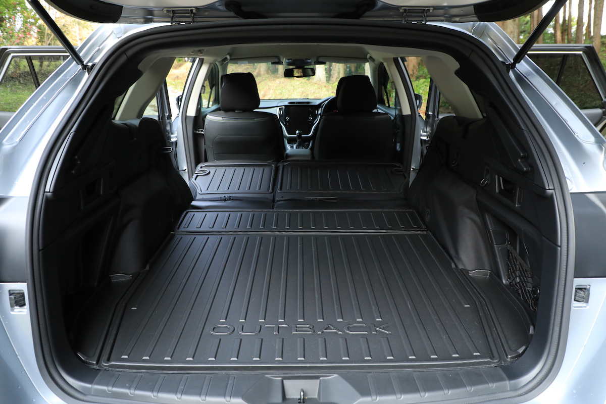 そして荷室。561Lという広さだけでなく、様々な工夫で収納力を高めているのが印象的でした。大きめのSUVでもゴルフバッグを横置きできないモデルは結構あるんですが、アウトバックなら余裕。キャンプギアなどの汚れモノをラフに積んでも、アクセサリーの「カーゴトレーマット」を装着すれば水や泥がクルマに浸透しにくいなど、随所に配慮が行き届いています。