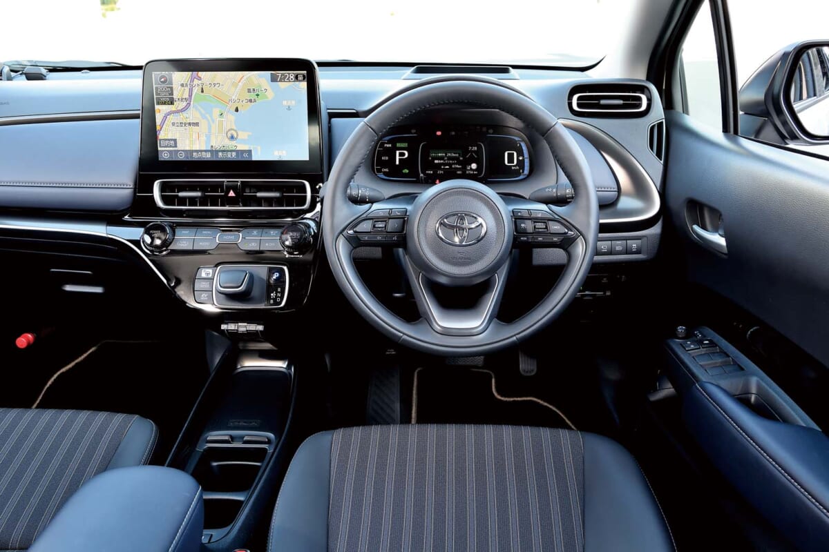 コンパクトカーに相応しい使い勝手を確保しつつ、室内はクラスを超える上質感も追求されている。トヨタのハイブリッド車を象徴するシフトセレクターも新意匠に変更された。