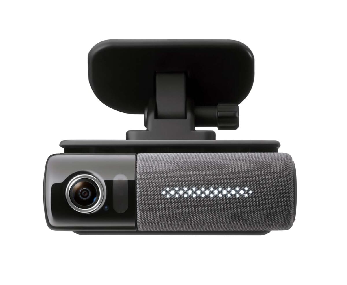 本体は小さめの弁当箱サイズ。これをフロントウインドウの上部に取り付け、電源はシガーソケットから取るだけ。それ以外に接続するものは何もありません。本体には前後2つのカメラを備え、これがドライブレコーダーとしての役割を果たします。音声でやり取りするためのマイクやスピーカーも内蔵したことで、音声認識によるインターフェースを実現しているのです。