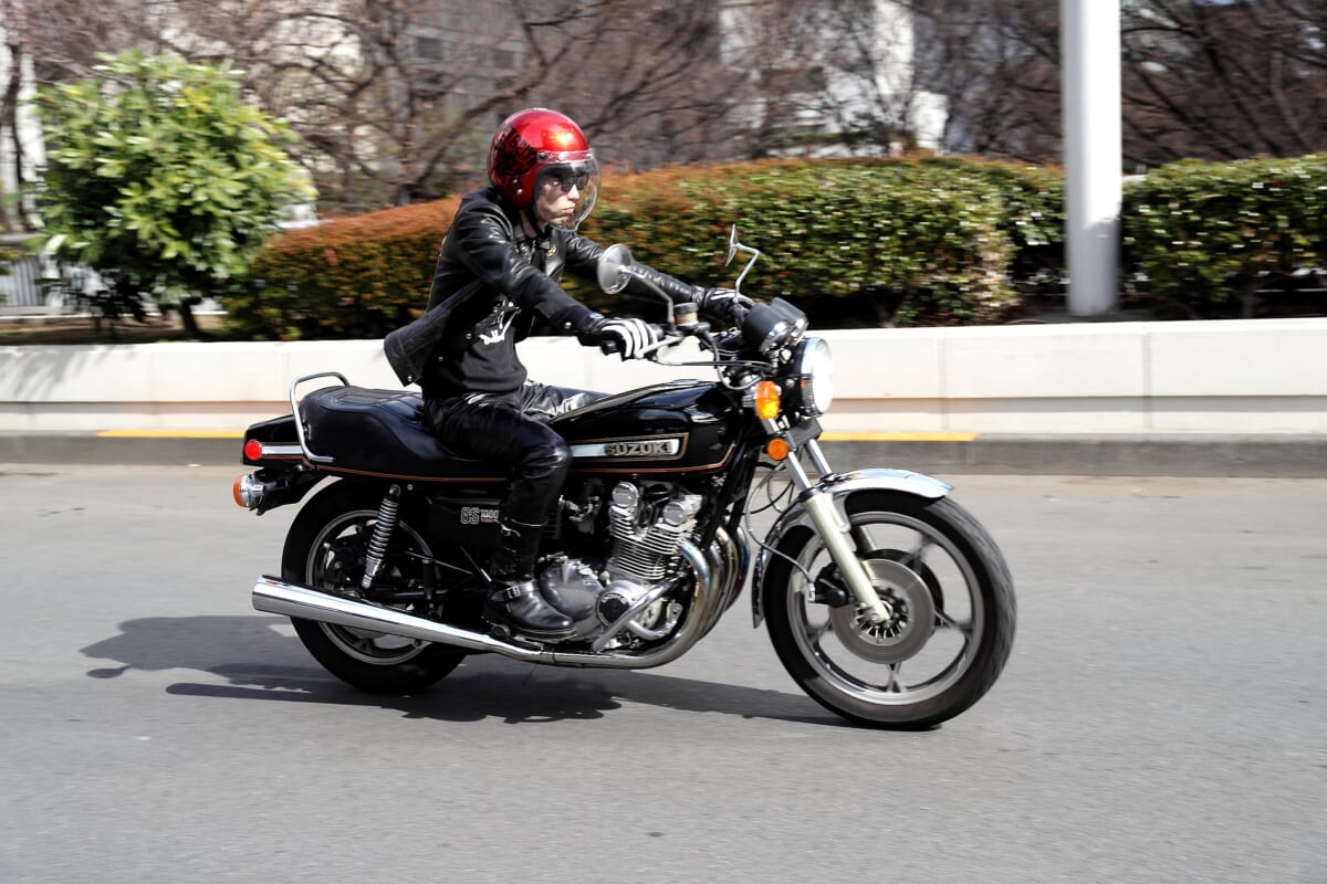 ――この企画では初となるスズキ車、しかも、ヨシムラが1978年の第1回鈴鹿8時間耐久レースで優勝したことで知られるスズキGS1000です。先ほどエンジンをかけてもらいましたが、音がいいですね