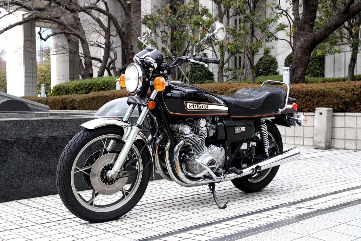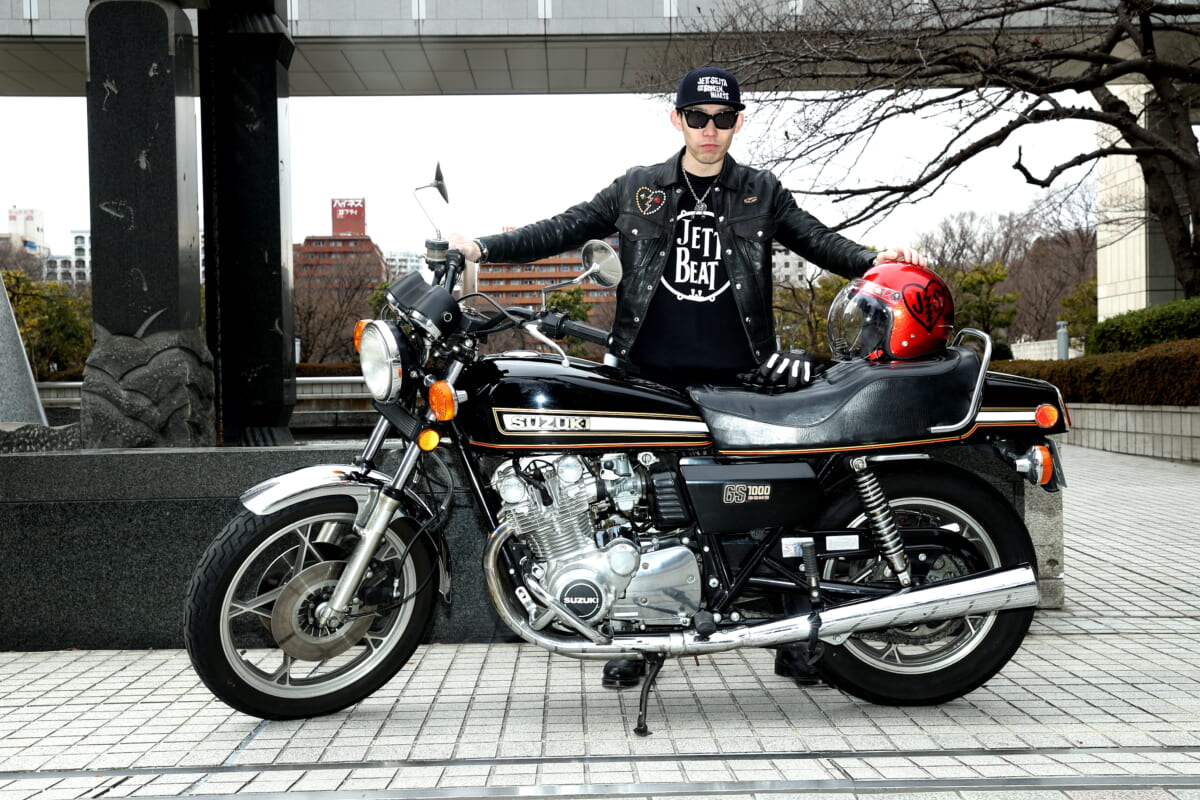 セ「昔からの知り合いでもある『君はバイクに乗るだろう』の編集長・坂下(浩康)さんと一緒にバイク探しの旅に出て、川口市のバットモーターサイクルさんでGS1000に出会ったんですけど、見たときにまず『ダース・ベイダーみたいだな』と思ったんですよね。で、タンクに大きく“GS”って描いてあって『なんだこのバイク!?』って衝撃を受けました。タンクも大きくて、Zよりも太い」