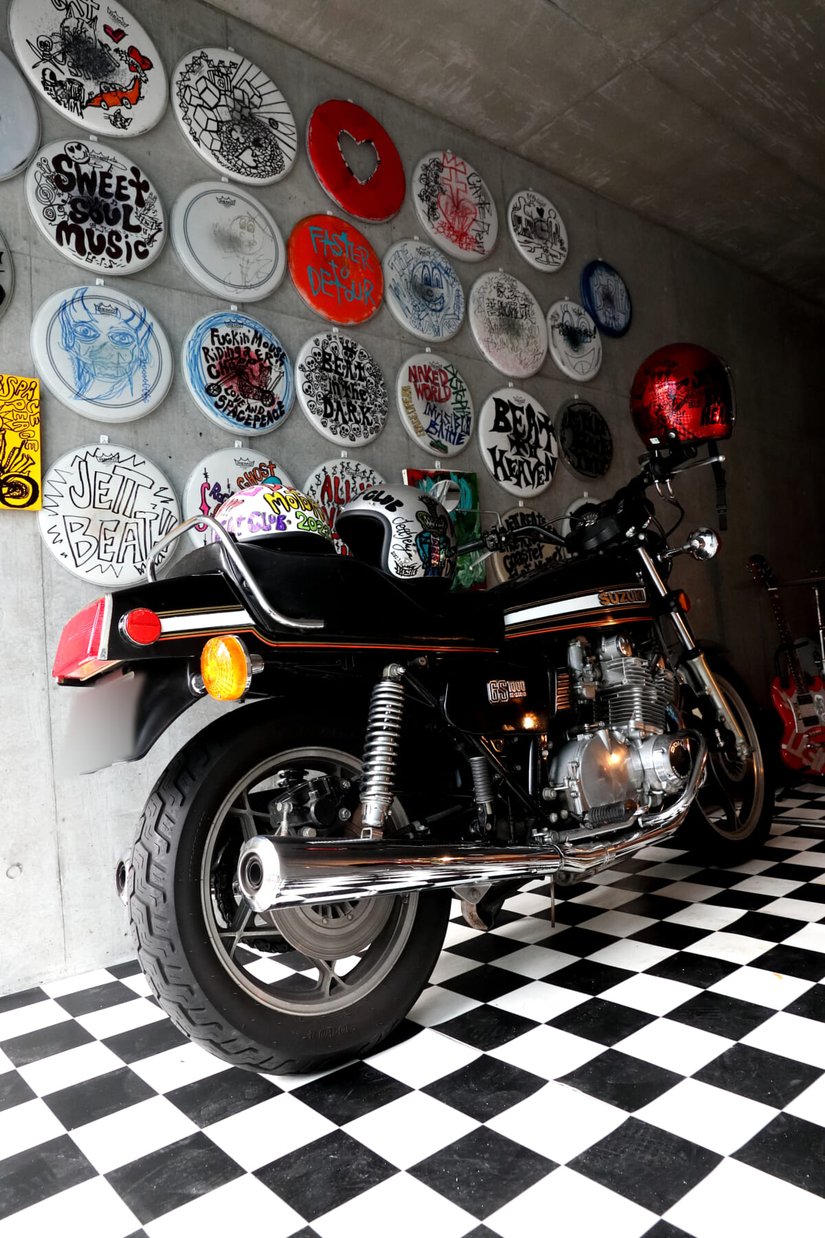 セ「もとはレコーディングエンジニアさんが持ってたやつで、スタジオの軒先でずっと雨ざらしになっていたんです。新しいバイクを購入されたようだったので、その流れで自分が引き取りました。全塗装しようかなと思ったんですけど、ヤレた感じがいいのでそのままにしてます。GS1000やK90は“先輩”という感じですが、ベスパは“友だち”という感じですね」