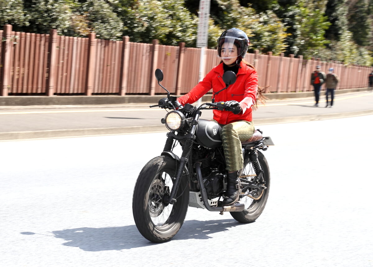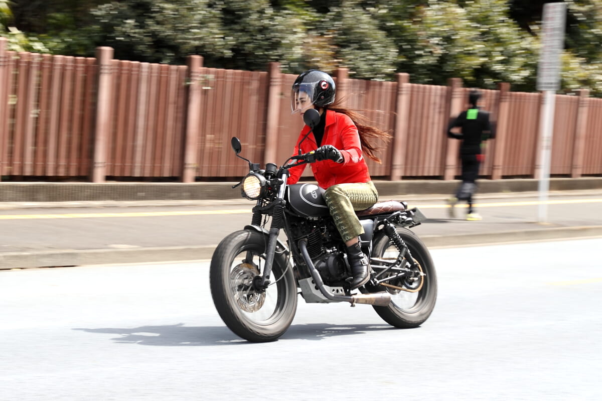 GARU「楽ですね。でも、やっぱり私のベースは東京なので、機動性を重要視してるんです。リッターだと、もし人がいきなり飛び出してきたり、なにかあったときに止まれる自信がないし、どこかにぶつけて傷つける自信がある(笑)。250くらいなら最悪そういう事になっても、なんとかできそうな……自信はないですけど、まだリッターに比べたら事故は少ないかなと思います」