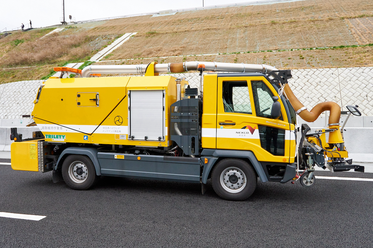 これまで高速道路に落下したゴミがあるとその都度、作業員が車両から降りて拾っていたのですが、この新車両では、前方にある強力なバキュームによって回収できるように! 作業の省力化と作業員の安全性の向上が期待されます。働くクルマも進化し続けているんですね。