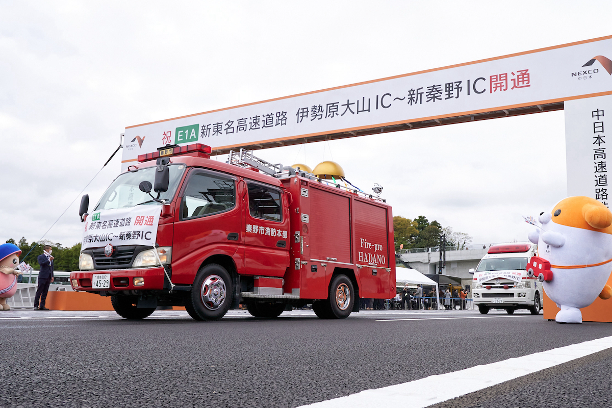 当日は開通式も執り行われ、厳重な感染対策の下、400人もの関係者が参列。さらに、高速道路やこの区間に関わる“働くクルマ”約60台が集結する、大規模な祝典となりました。今回は、そんな晴れの日を盛り上げた“ヒーロー”にスポットを当てるほか、同区間に導入された最新技術も紹介していきます。