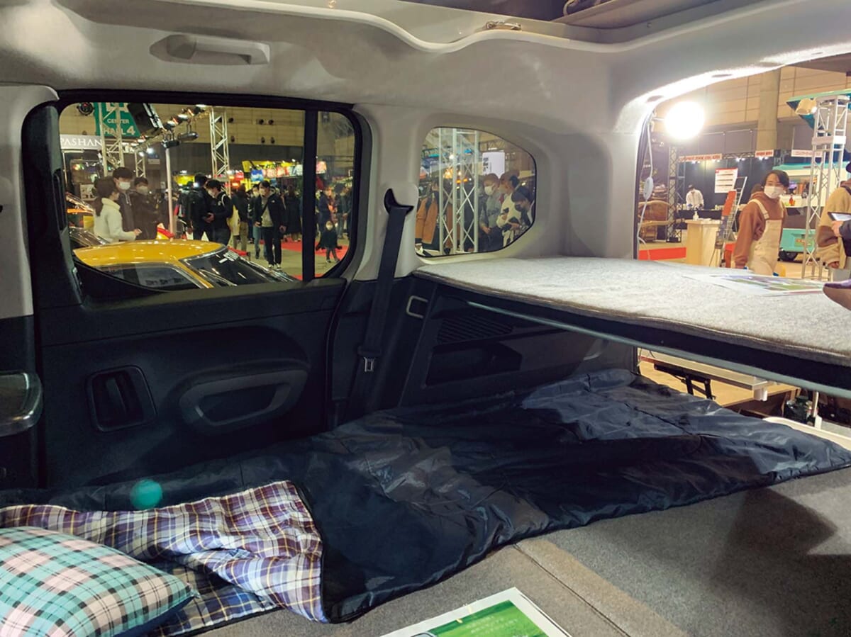 多彩な使い方ができるマルチバン、シトロエン・ベルランゴがベース。余裕ある室内空間を生かし、収納性と利便性を兼ね備えたうえ着脱可能なW1170×D1800mmのフラットベッドを設置。自由にレイアウトでき、5人乗車も可能になることで、街乗りも車中泊でも便利に使える。簡単に操作できるポップアップルーフテントの設置にも対応。