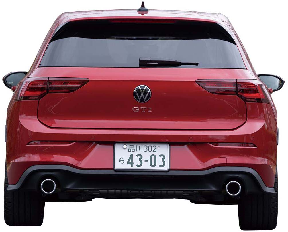 GTIは“押し”の強いフロントマスクに加え、リアゲート中央の車名ロゴが「GOLF」ではなくなる(税込466万円)。軽快かつパワフルな走りが楽しめる。