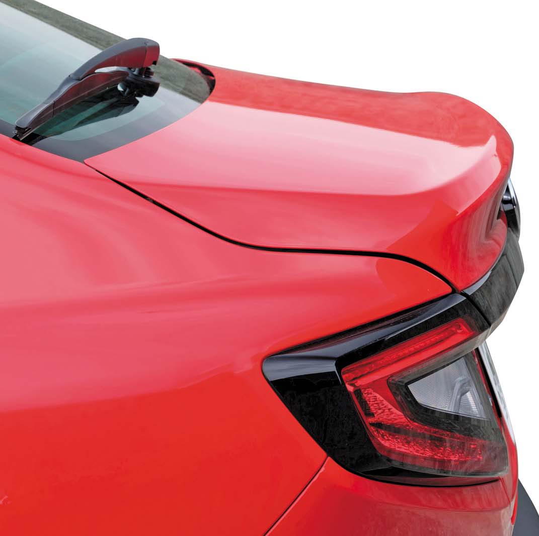 歴代WRXといえば巨大なリアウイングを想像しがちですが、新型ではトランクの後端がニュイっと持ち上がっているだけ。本当にこれだけでダウンフォースが発生するのかどうかは、超高速域で走らせたドライバーのみぞ知ることです。