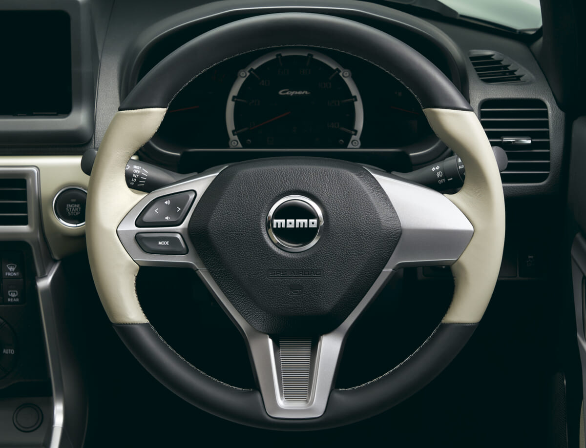このほかにも、MOMO製本革巻きステアリング、本革巻きシフトノブ、アイボリーインパネガーニッシュ、3眼メーターなどの専用内装や、外装にもブラック加飾のヘッドランプ、メッキアウターハンドルなど、特別感を高める装備を採用。気になる実車は6月26日まで「コペンローカルベース鎌倉」にて展示中。