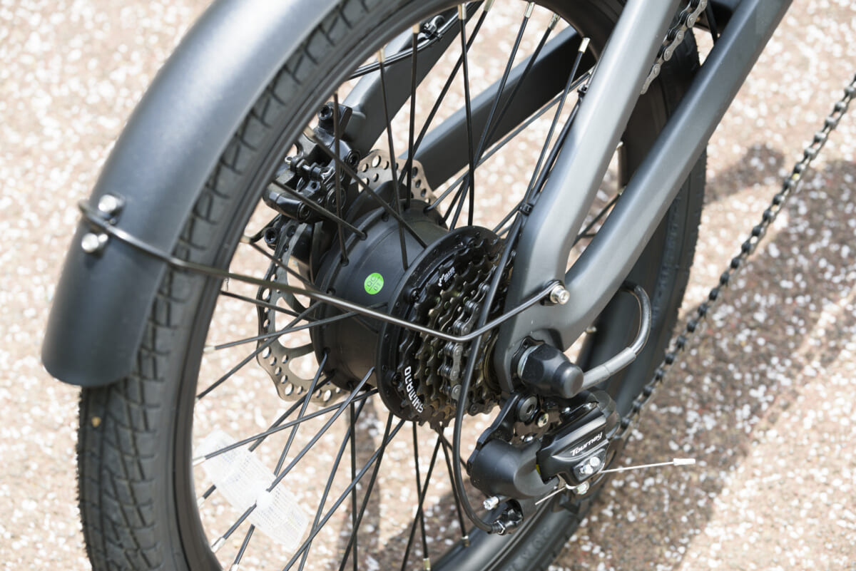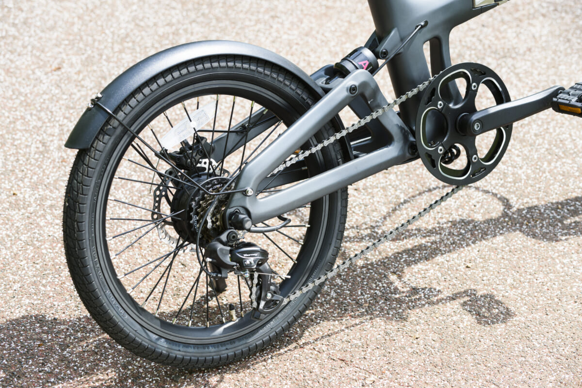 走行性能に目を向けても15.5kgという車体の軽さは有利。車体が軽ければ、バッテリーの消費を抑えることもできます。変速ギアはリアのみの7速と段数は多くありませんが、アシストがあるので多くの変速段数は必要ないと考えることもできます。