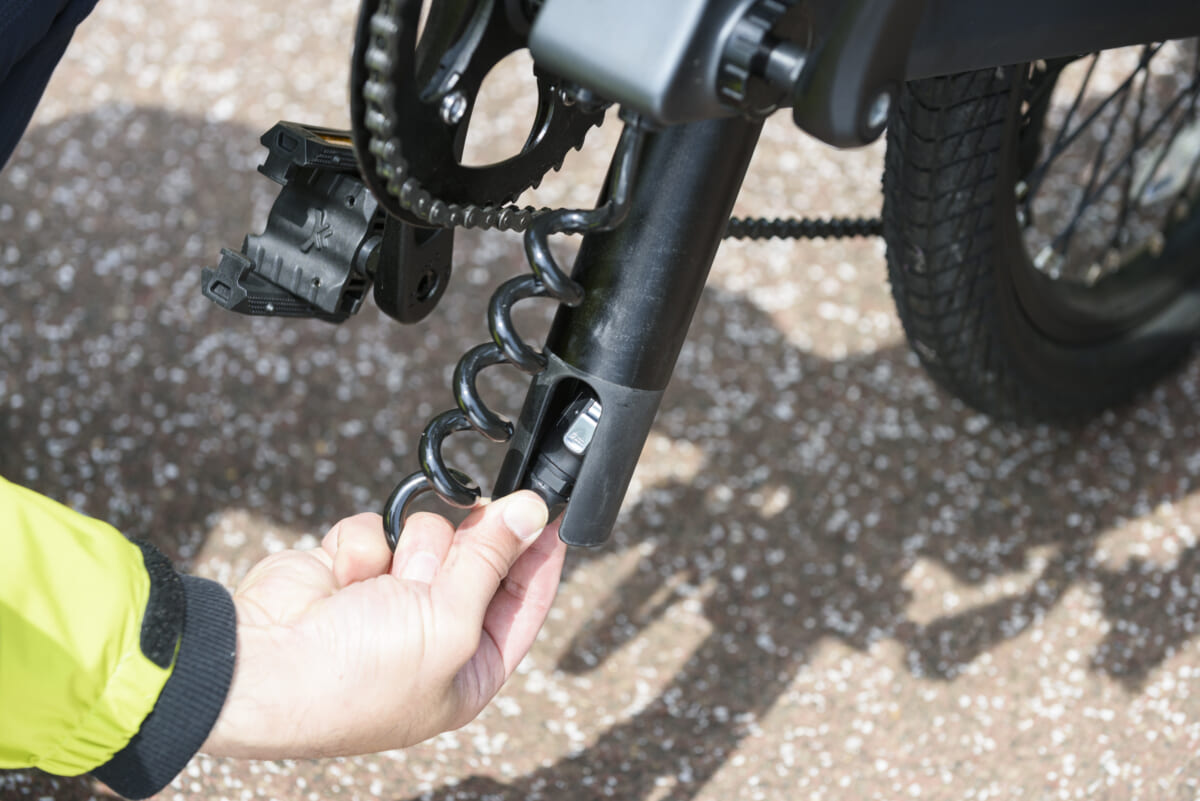 もう1つ便利なのは、折り畳み機構が搭載されていること。15.5kgの重量は持ち上げて運ぶにはやや重さを感じるだろうが、クルマや電車に持ち込むにはギリギリ何とかなる重さ。また、コンパクトに畳めることで自宅に持ち込んで室内保管するにもありがたい機構です。