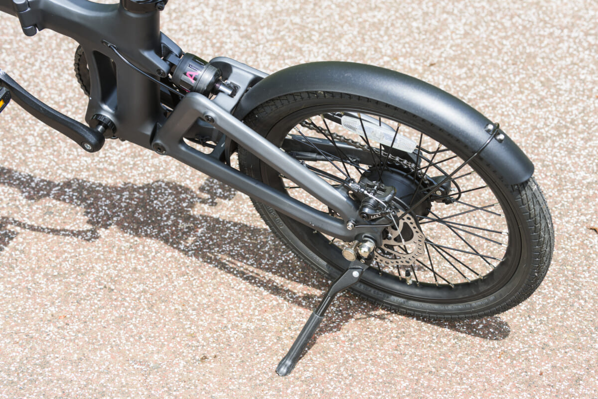 モーターは中国製でアシストは5段階に切り替えが可能。ハブモータータイプはアシストがダイレクトに効く分、漕ぎ出しで唐突に車体が押し出されるような感覚をおぼえることも多いのですが、「カーボン エイジ」はあまり唐突さを感じません。最もパワフルな5段階を選択すると、グイグイ坂を登って行けるパワフルさがあるので、パワー不足ではありませんが、よく調律されたアシストフィーリングです。
