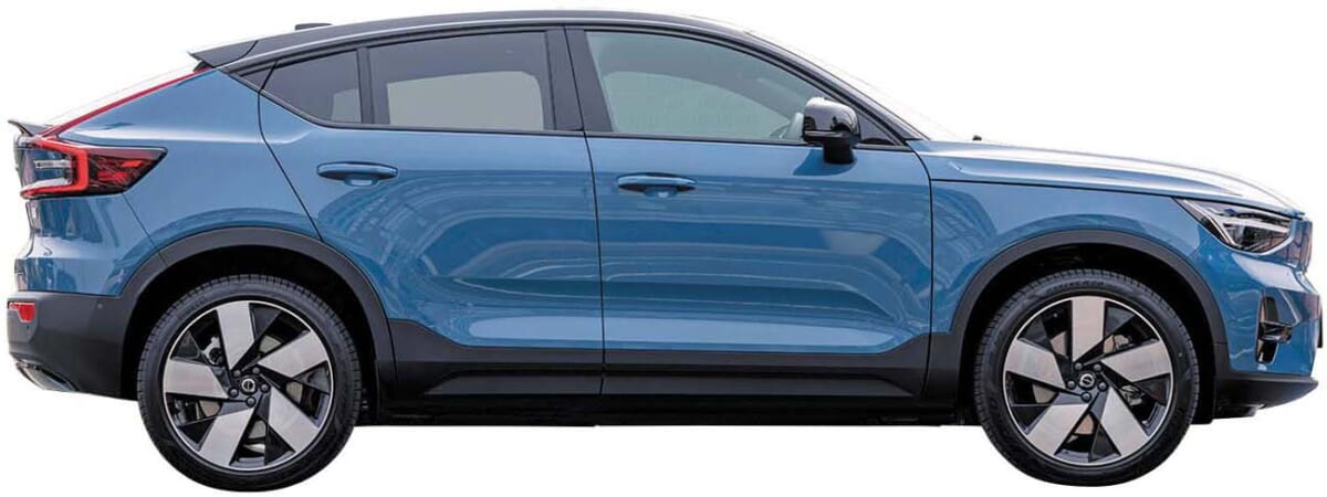 クロスオーバーモデルとなるC40は、グラスエリアをタイトに仕上げてクーペらしさを演出。搭載するパワーユニットはEVのみ。7月にはXC40(コンパクトSUV)のピュアEV版もオンライン購入サイトがオープン。