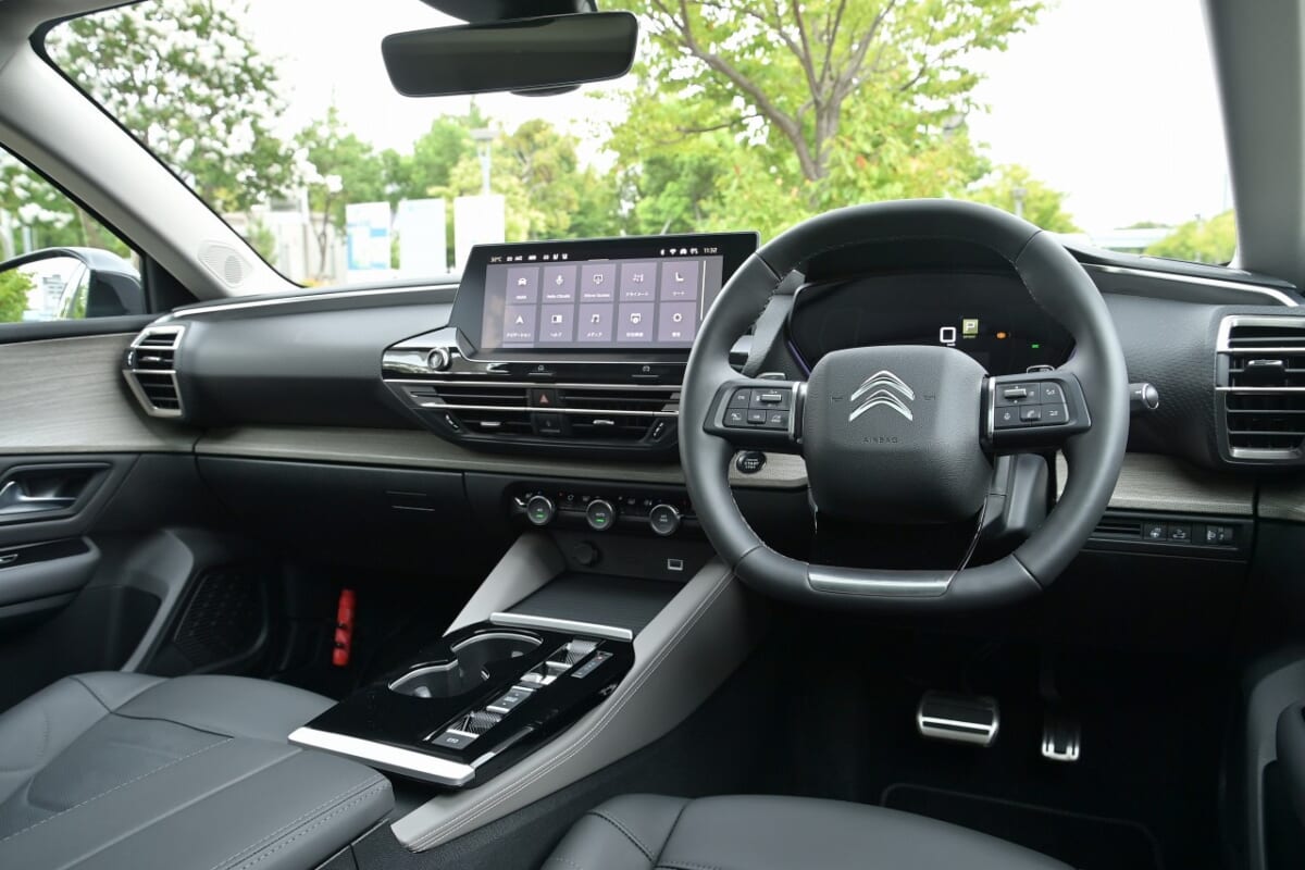 その点で言うと、C5 Xのインテリアは実にちょうどいい。シブい色調の車内は、それほど質感の高くないオシャレ感に満ちている。かつてシトロエンと言えば、1本スポークステアリングなど奇抜な演出が定番だったが、近年のシトロエンは奇抜さよりも、親しみやすさを重視している。シトロエンファンとしては、まずまず納得の仕上がりだ。