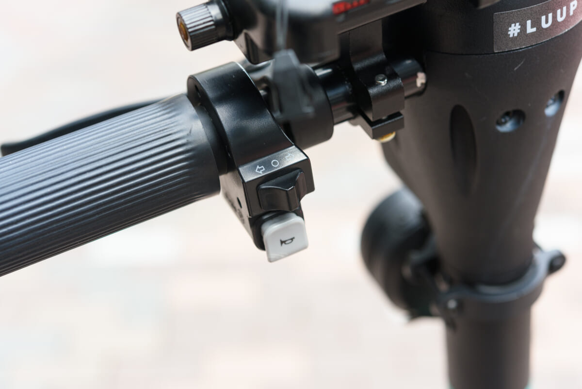 LUUPの最高時速は約15km/h。ママチャリで走っているのと同程度の速度です。個人的には、バイクに乗るときはもちろん、自転車に乗るときもヘルメットをかぶるようにしているので、ノーヘルで車道を走るのはやや不安でした。速度的には、それほど危なくはありませんが、速度差のあるクルマと接触してしまった場合、ヘルメットがあったほうがリスクが抑えられそうです。また、道路の左側は自転車やバイクも走るので、その点も注意が必要だと感じました。