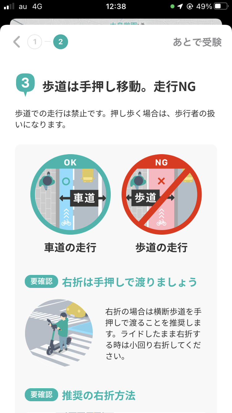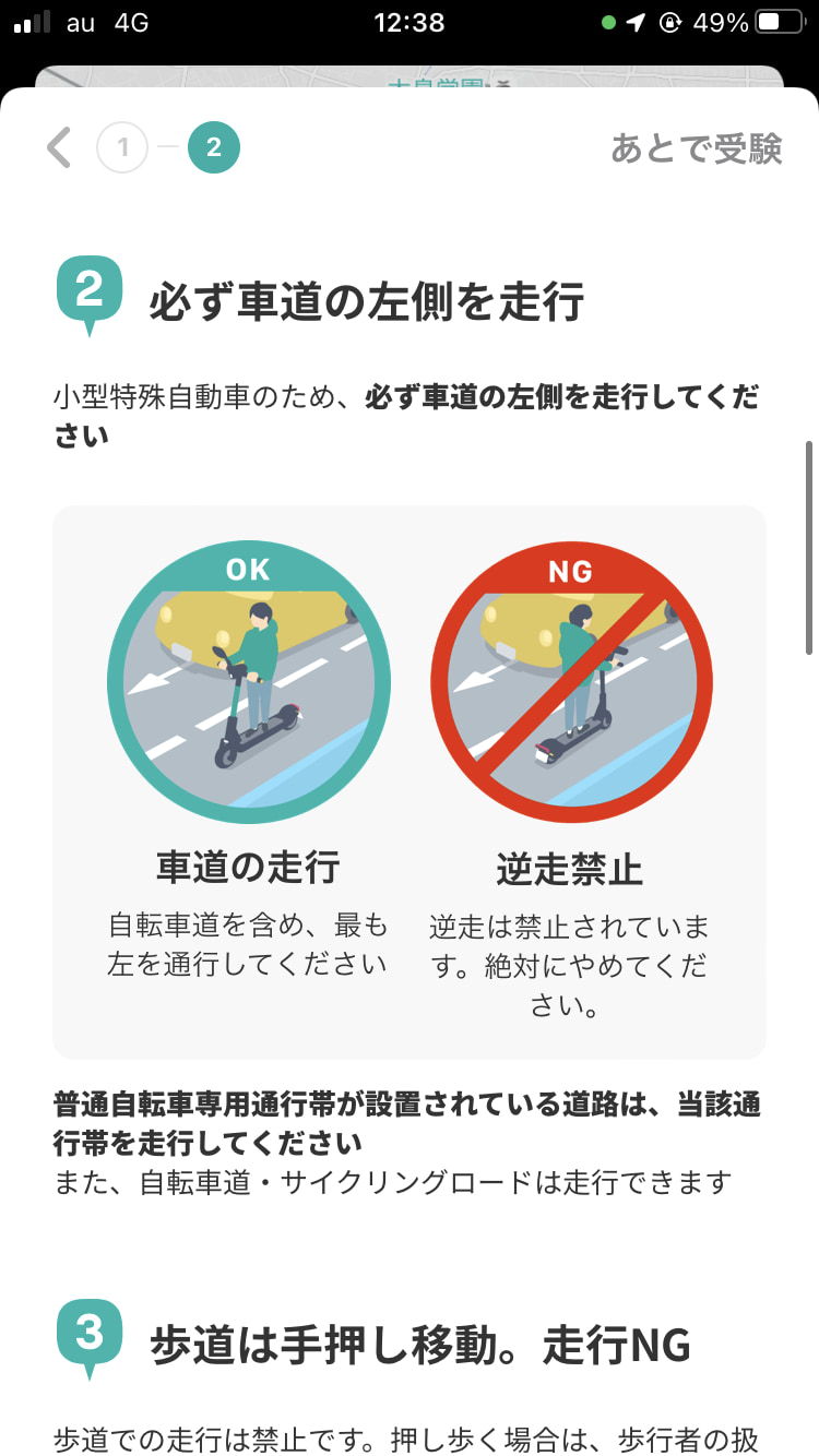 近年は電動アシスト自転車のシェアリングサービスも拡大していますが、電動キックボードはそれよりは気軽に乗れて、近距離の移動に向いている印象でした。こうした電動のモビリティでは、よく”ラスト・ワン・マイル”という言葉が使われますが、まさに電車などの公共交通機関を降りて目的地までの1マイル(約1.6km)の移動に適していると言えそうです。
