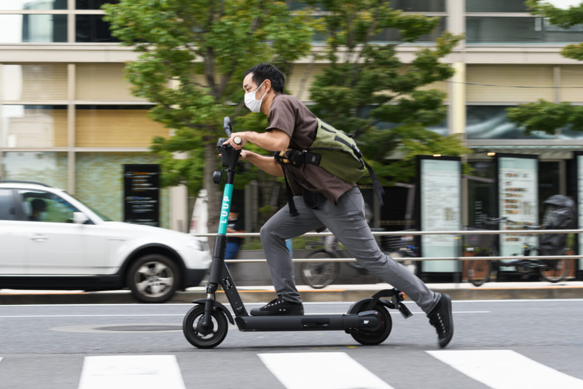 ただ、この改正道交法はまだ施行されていないので、現状の電動キックボードは原動機付自転車のカテゴリーになり、免許やヘルメットが必要。シェアリングサービスは実証実験としてエリアと事業者を限定して行われているものなので、こちらは法の施行に先んじてヘルメット不要で乗ることができますが、運転免許の携帯は必要とされています。