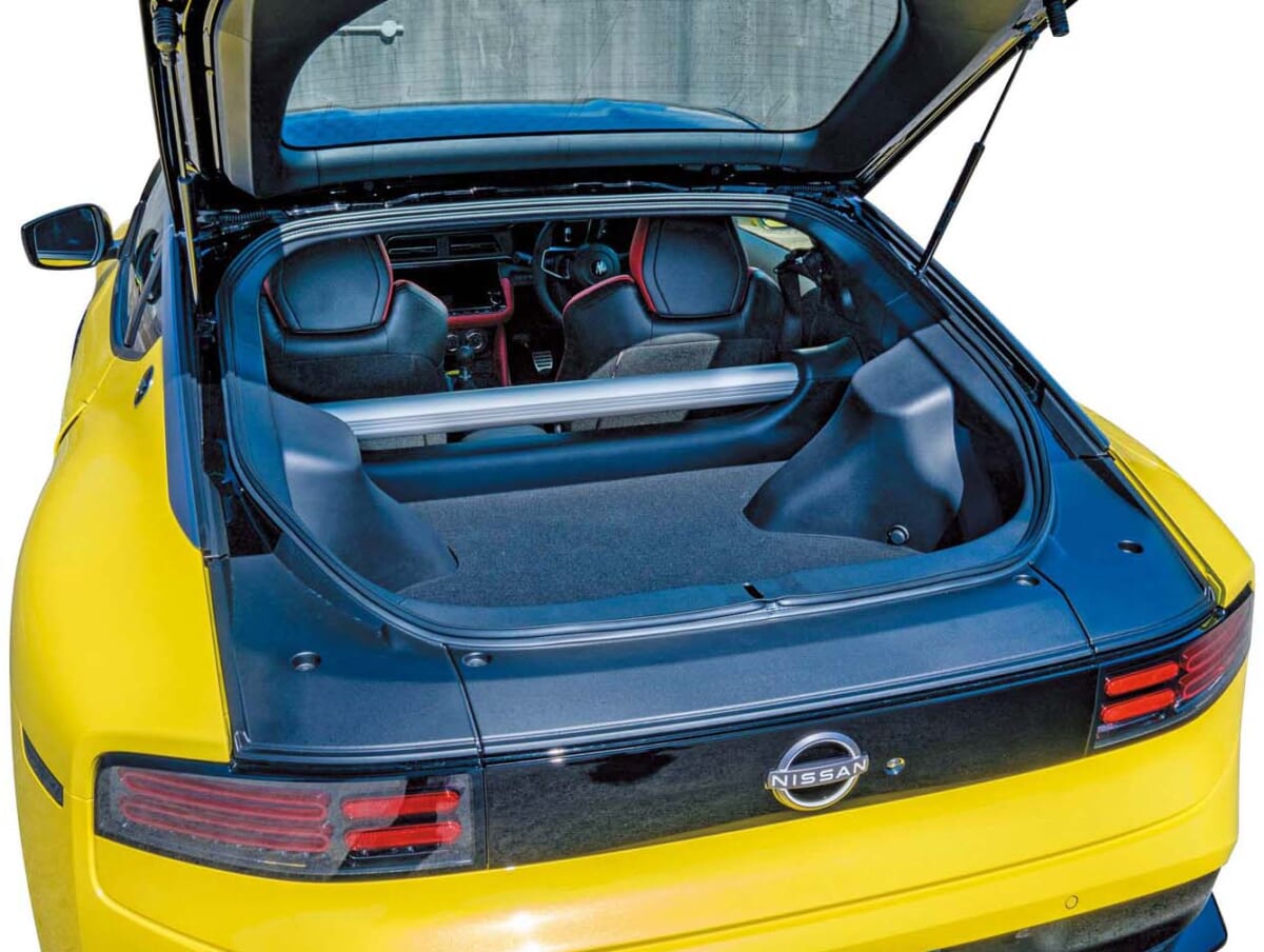 Z伝統の前後に長いリアハッチが採用されています。開口部はかなり広くて大きな面積の物を積み込みやすいのですが、収納部に深さがないのであまり厚みのあるものは入れられません。スポーツカーなのでここは期待しないでください(笑)。