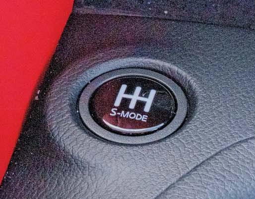 シフトノブ左奥のスイッチを押すと「シンクロレブコントロール」が作動します。これは、シフト操作をした際にクルマが自動でエンジン回転数を合わせてくれるというもので、プロが操作したような感覚を味わいながら変速できます。