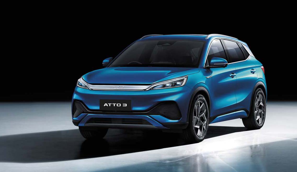 BYDの日本導入EV第一弾となるATTO 3(アットスリー)。2022年2月に中国で販売を開始して以降、シンガポールやオーストラリアでも発売。独自開発のEV専用プラットフォーム「e-Platform3.0」を採用し、広い車内空間と440Lの荷室を実現している。