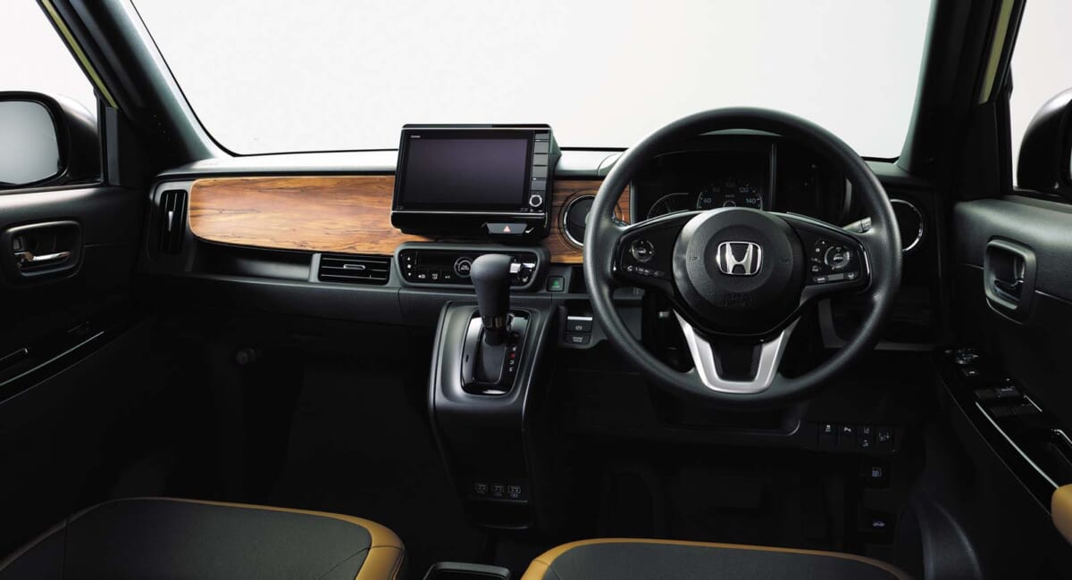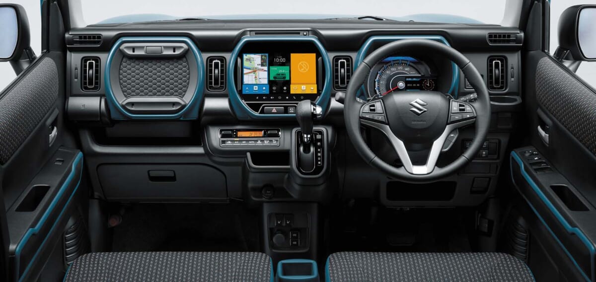 従来の軽自動車では見たことがなかったような自由度の高いデザイン。インパネ正面に3つのサークルを設けるなど、どこかギアっぽさ、おもちゃっぽさを感じる作りになっている。