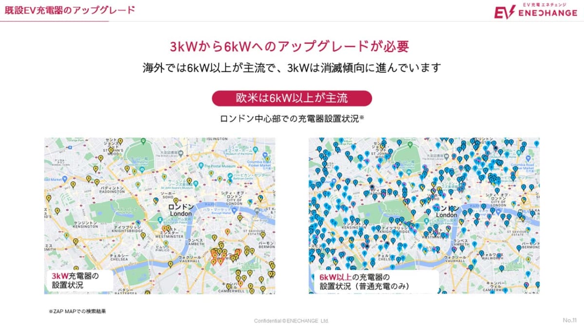 城口氏は設置を進める充電器を6kWとしていることにも触れ、「普段生活しているロンドンでは、普通充電器の大半が6kW以上の高出力型となっている」とし、「EV普及期に来ている日本でも6kWの充電器の普及させていきたい」としました。一方で6kWの充電器を普及させても、車両側で3kWに入力を制限している場合もあります。