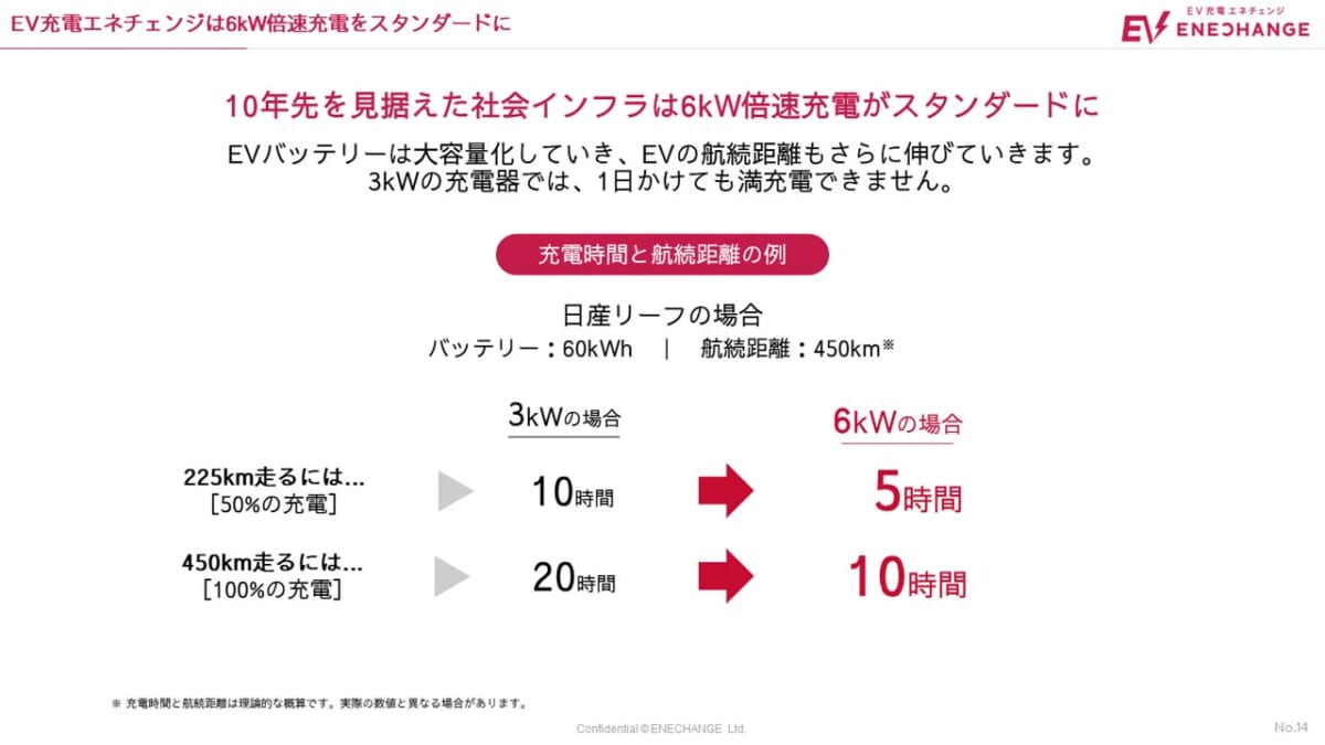 両プランで共通するのは、設置する普通充電器の基本出力を“6kW”としていることにあります。実は、これまで日本国内で普及してきた普通充電設備は大半が“3kW”でした。それを2倍の出力で効率よく充電していこうというわけです。