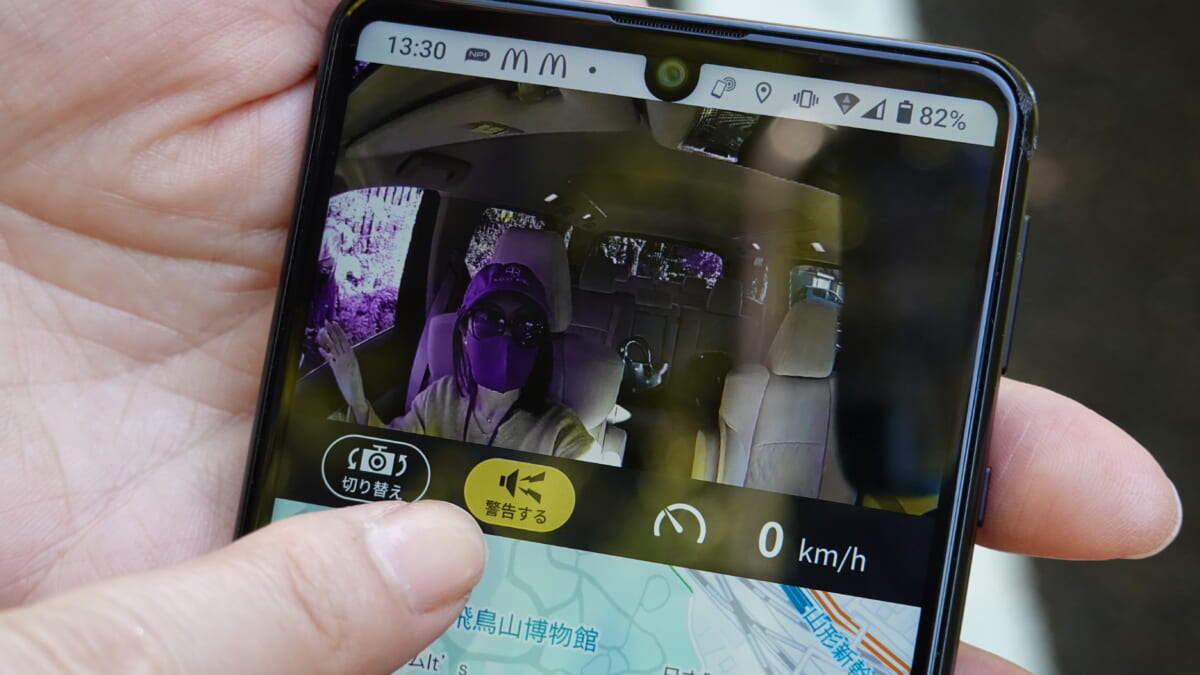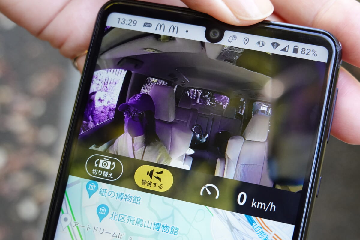 アプリを起動して映っていた映像は想像以上に鮮明で、“不審者”の表情までしっかりと読み取れるレベルです。取材したときは昼間でしたが、車内は日陰で少し暗めの状況。それでも“不審者”の表情までも鮮明に映し出していたのです。これはNP1に搭載された赤外線対応カメラが機能しているからで、これによってたとえ照明がない夜間であっても鮮明に撮影できるのです。