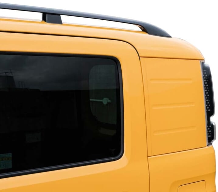 スペーシアとの外観上の大きな違いが、リア(荷室部分)のサイドウインドウがなくなっていること。ベースではこの内側にポケットやフックが付いていて、荷室活用時には便利な棚や小物を置くスペースとして使うことができます。