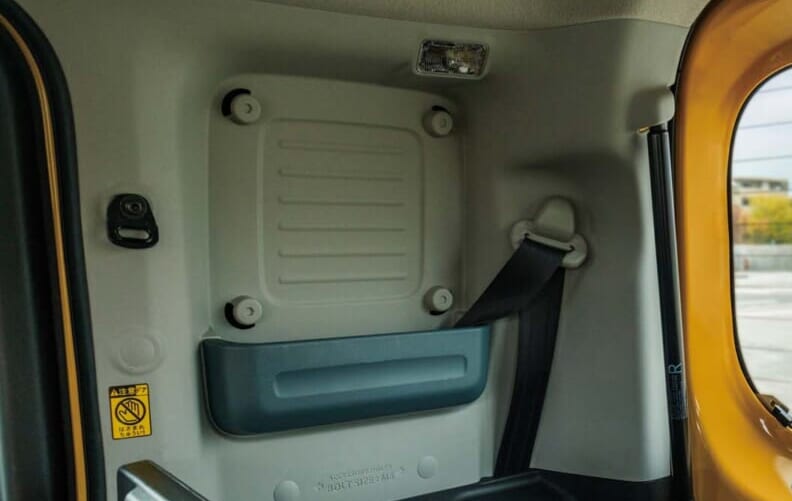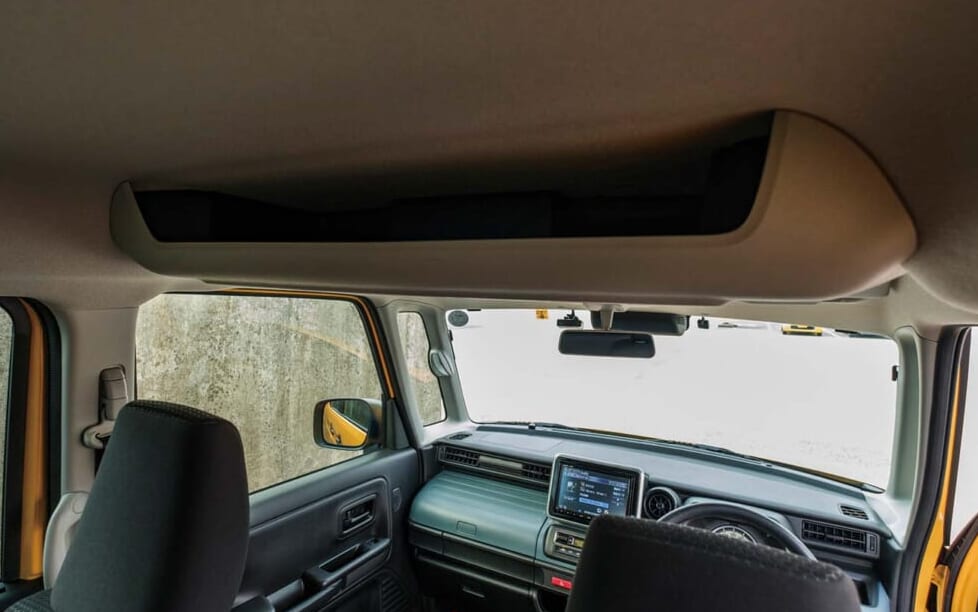 商用バンなどで時々見かける装備ですが、スペーシア ベースにも天井に物入れスペースが設置されています。上位グレードのみの設定ですが、天井のデッドスペースを活用するという、軽自動車のなかでも車高が高いモデルに許された特権ですね。