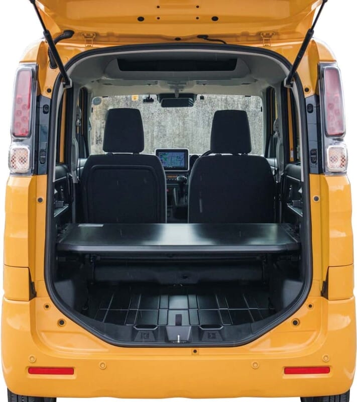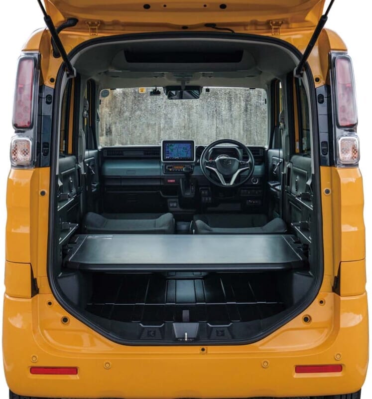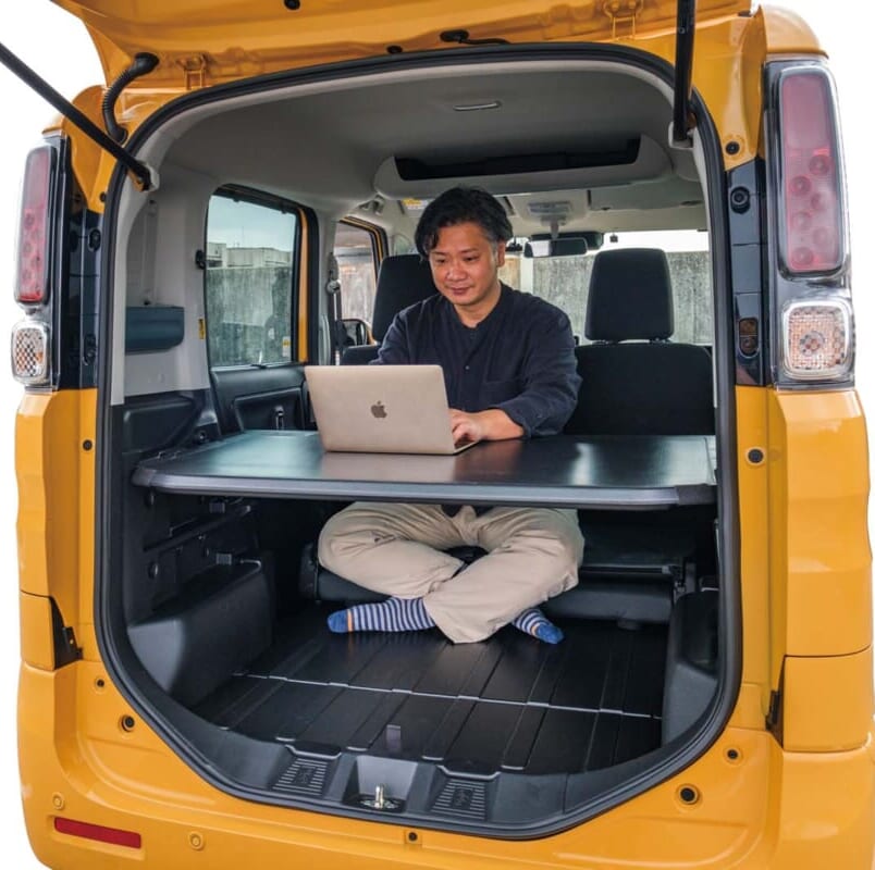 クルマの最大の特徴がボード(板)というのは長い自動車史のなかでも初めてかもしれません(笑)。搭載された1枚のボードを荷室内にある様々な凹みや突起に組み合わせて設置することで、荷室がデスクスペースになったり、フラットスペースを生み出せたりします。荷室の上下・前後の分割なんてこともできて、秘密基地気分で愛車を自由に使い倒せます。