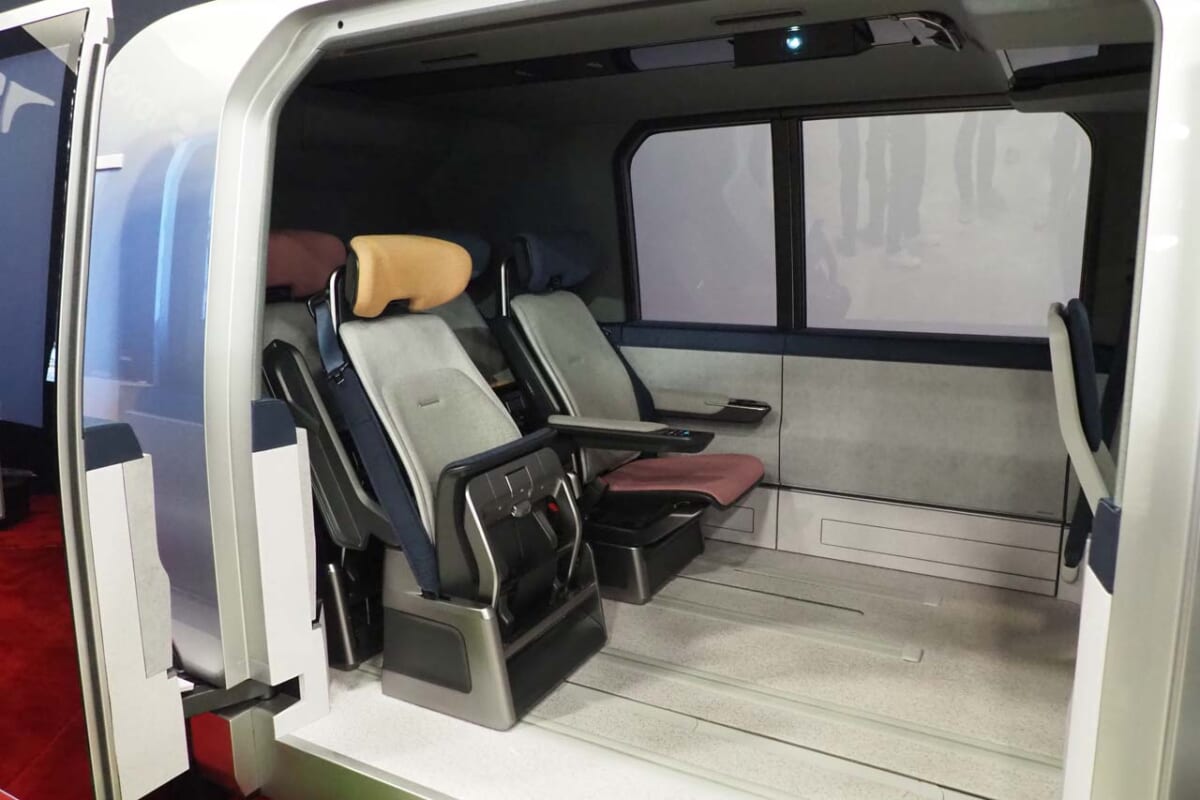自動車向けシートを開発するトヨタ紡織は、MaaS社会に向けて、将来の自動運転を想定した二つの車室空間を提案しました。一つはMaaSシェアライド空間コンセプトの『MX221』で、自動運転レベル4を想定した都市部シェアモビリティです。多様な移動ニーズへの対応や、利用シーンに合わせた空間レイアウトや内装アイテムの載せ替えを可能としました。もう一つはMaaSサービス空間コンセプト「MOOX」で、自動運転レベル5の時代における、さまざまなサービスニーズに対応する車室空間コンセプトとしました。