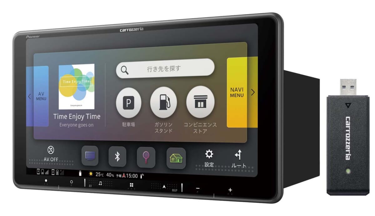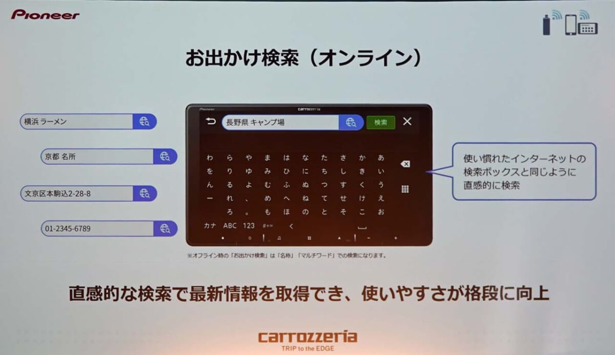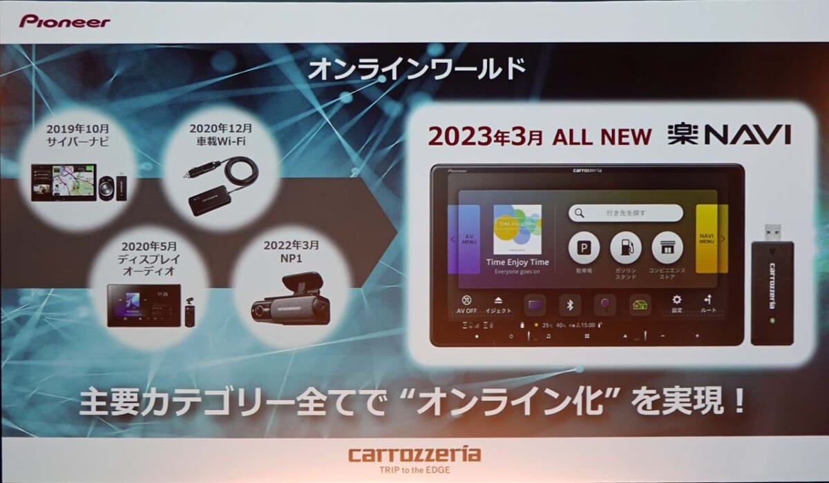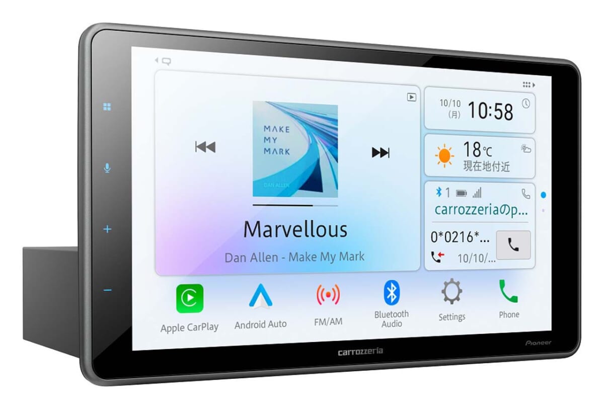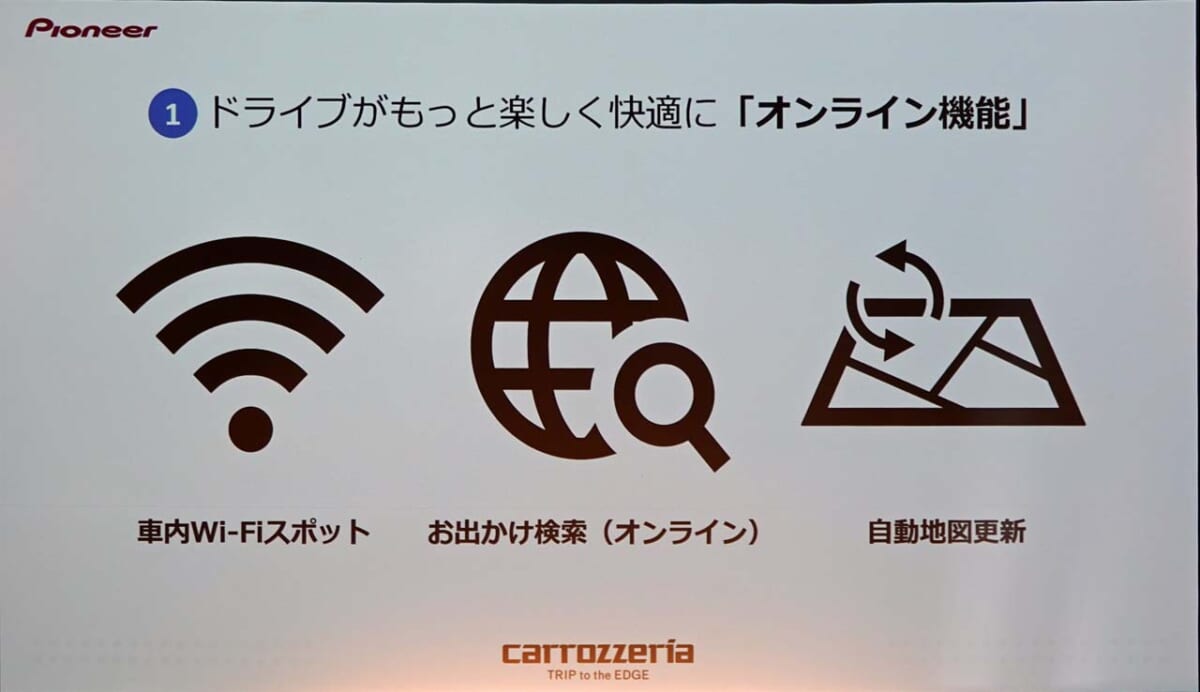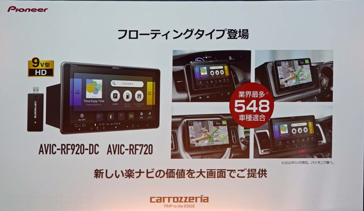 今回の発表では、ディスプレイオーディオの新作『DMH-SF500』も発表しました。従来のディスプレイオーディオ「DMH-SF700」と「DMH-SZ700」の中間に位置する機種で、フローティングタイプ9V型ディスプレイオーディオとしています。ミラーリングによってスマホの映像を大画面で楽しめるだけでなく、新たに「WebLink」に対応したことでミラーリングで表示した画面上からでも操作できるようになりました。セカンドモデルながら、最新機種らしい新機能の搭載に注目です。