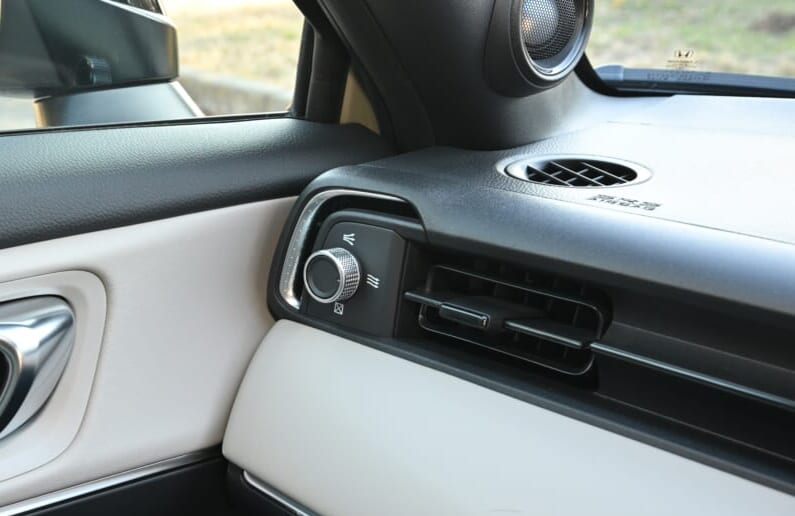 外から見ていると、なんだかボディが大柄に感じられる。たしかに先代モデルより全長と全幅は拡大されているものの(全高は低くなった)、しっかりコンパクトなモデルで、それはシートに座ってみると実感できる。ボディ全体の感覚は掴みやすいし、特別視界が悪いということもない。なお、インテリアデザインも、外観同様クリーンなイメージでまとめられていて好印象だ。