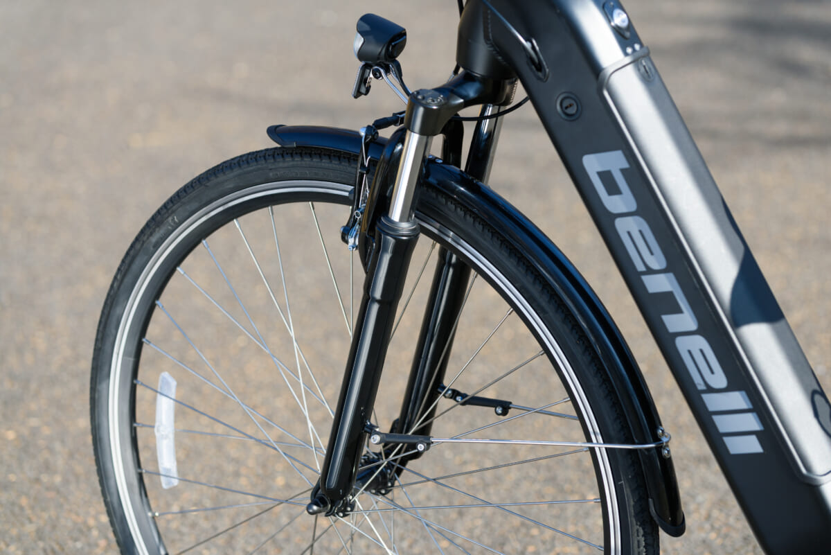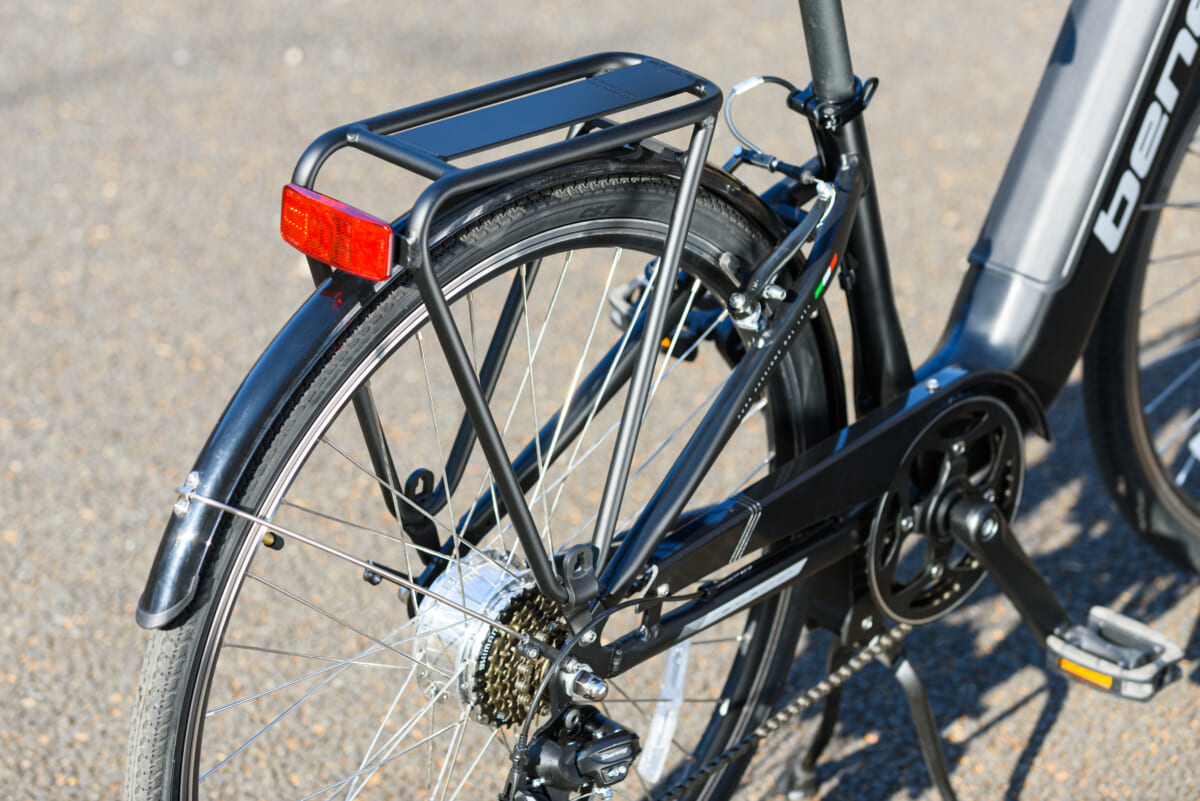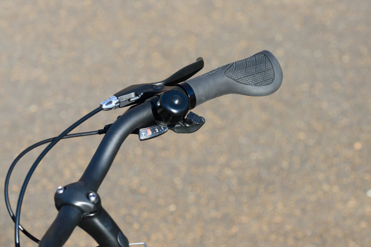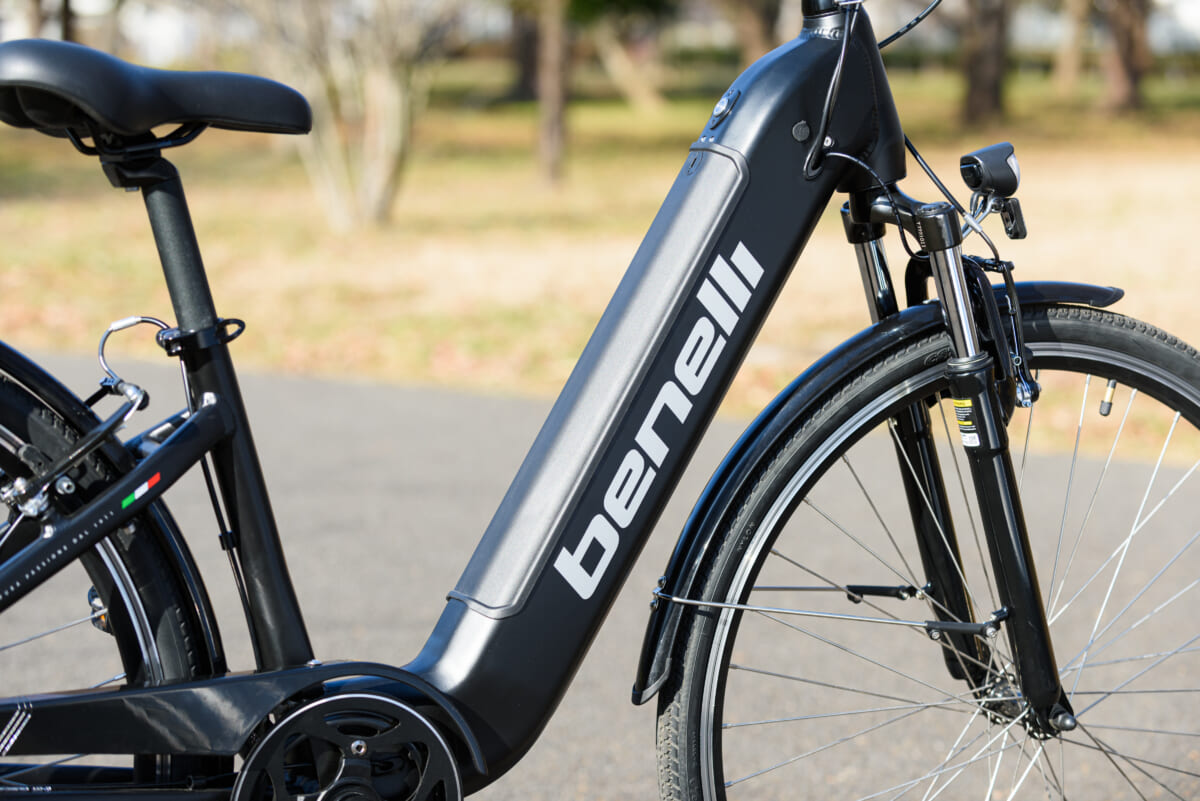 フレームの形状はステップインタイプで、フェンダーやキャリアなどの装備も使い勝手を重視した作りですが、乗り味はスポーツタイプのe-Bikeに近いフィーリング。その印象に効いているのが、サドルの真下にペダルが位置するようなフレーム設計です。スポーツタイプの自転車では一般的な設計ですが、この配置だとペダルを漕ぐ際に太腿の裏側やお尻の筋肉が使えるので、長時間乗っても疲れにくいというメリットがあります。