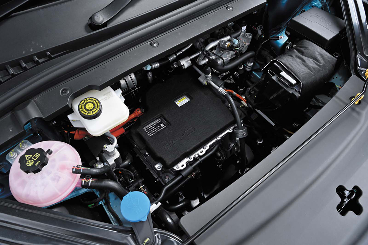 BYD独自のリン酸鉄リチウムイオン電池と組み合わせる電気モーターはフロントに搭載。自然なアクセルレスポンスが印象的だ。