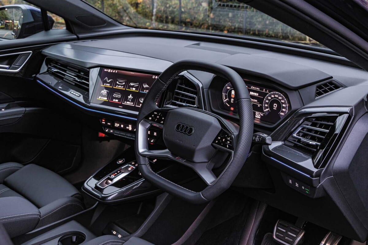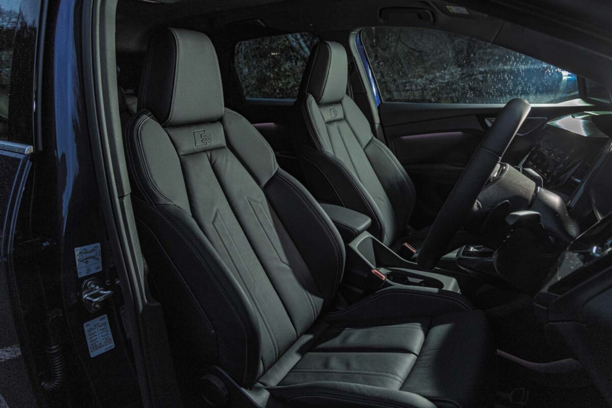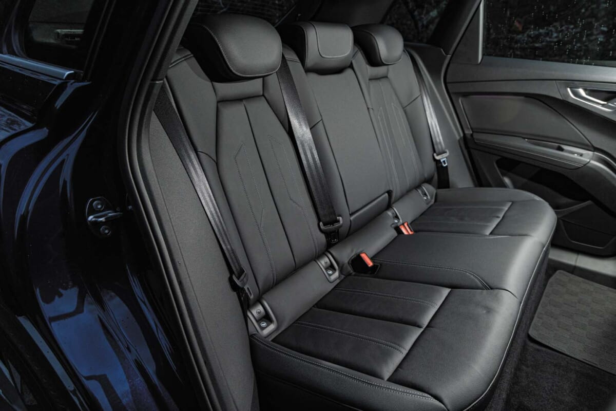 オプションでARヘッドアップディスプレイも選択できるインテリアは、アウディらしい精緻さと随所にピュアEVらしさを感じさせる仕立て。室内空間はサイズ相応の広さを誇る。