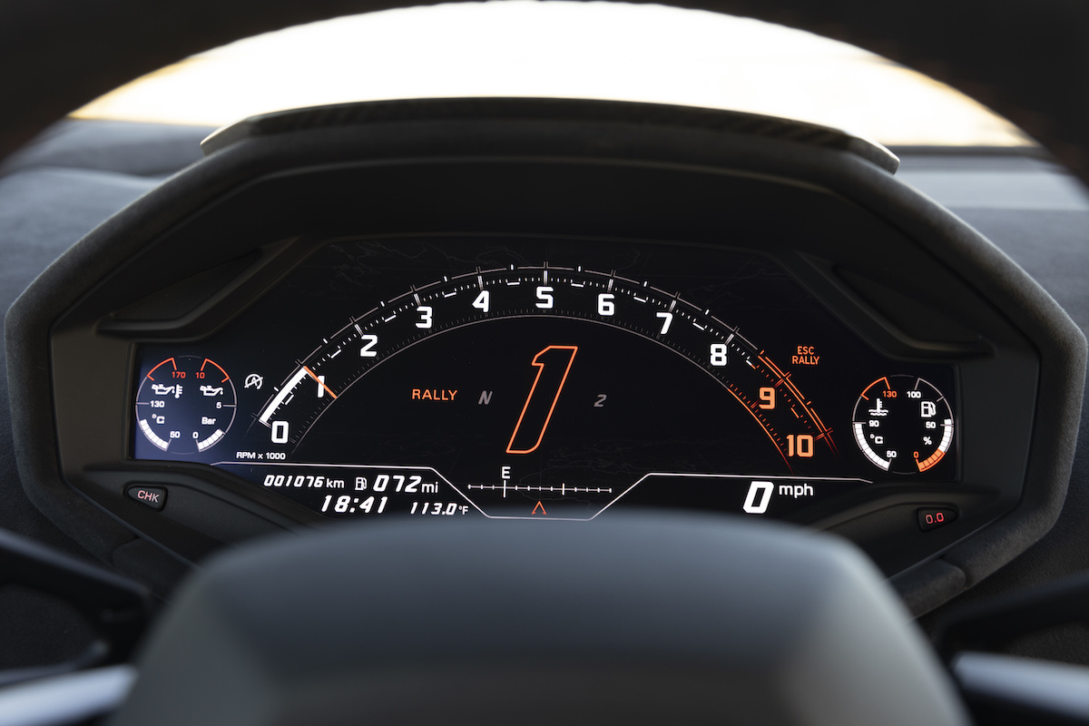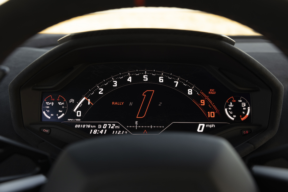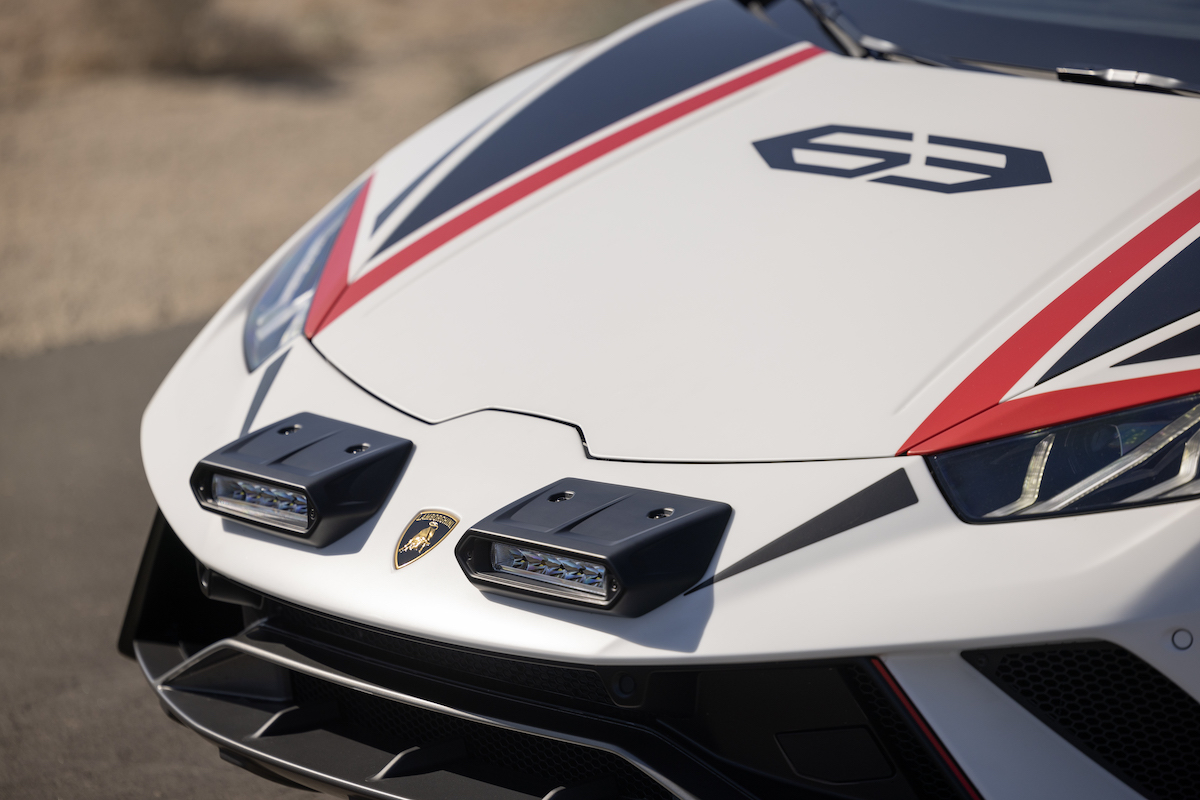 むしろ、ボンネット先端に装備された長方形のラリー用のライトや、前後のアンダープロテクション、黒のオーバーフェンダー、きれいな風をエンジンに取り込むためのにリアフードにつけられたエアインテーク。このあたりはウラカンとは違う、オフロードの雰囲気を漂わせています。