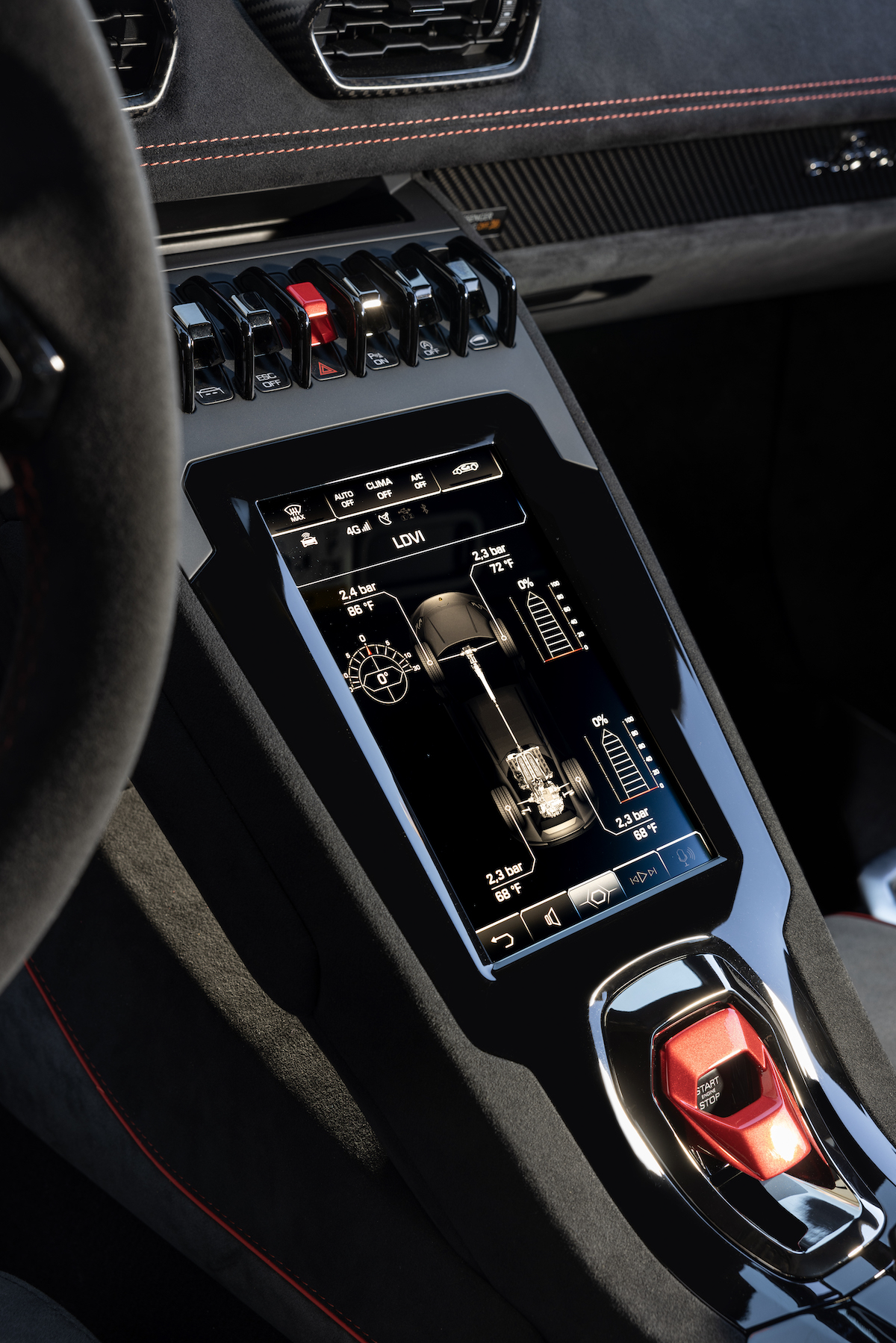 ウラカン ステラ―トはベースのウラカンEVOと比べて最高地上高が44mm高くなり、ボディサイズは全長5mm長く、全幅を23mm広く、全高は83mm高くなりました。同時に、フロントとリアのトレッドも広くなっています。全体的にひとまわり大きくなっている印象ですが、ほかのウラカンとプロポーション上の違いはあまり感じられません。