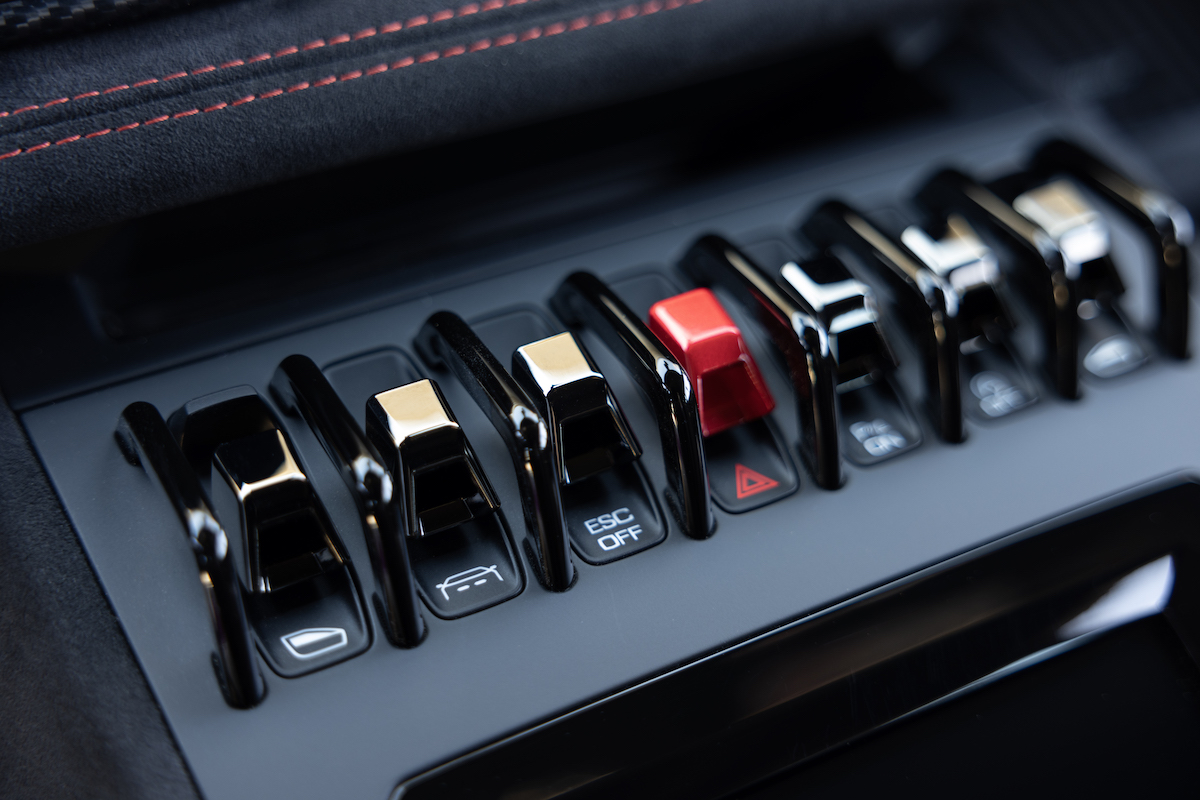 ほかにウラカン ステラートならではといえば、シート。Verde Sterratoと名付けられたアルカンターラ素材が特徴的です。シートやインテリアのレザーとアルカンターラは60色から、エクステリアは350色からカスタマイズも可能。