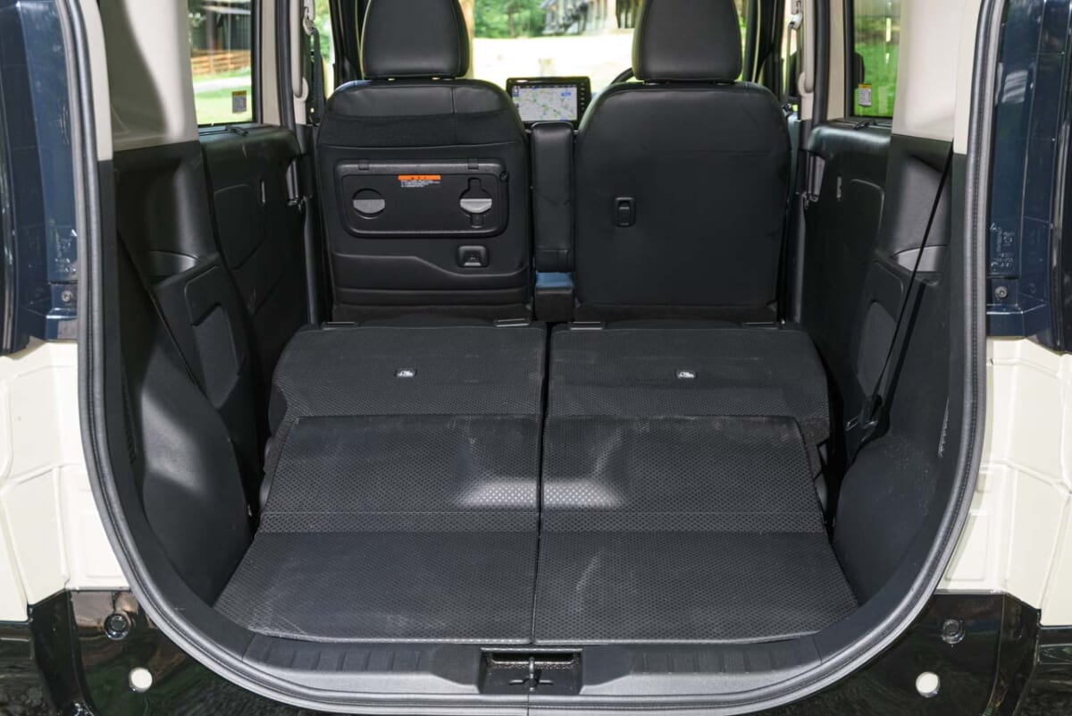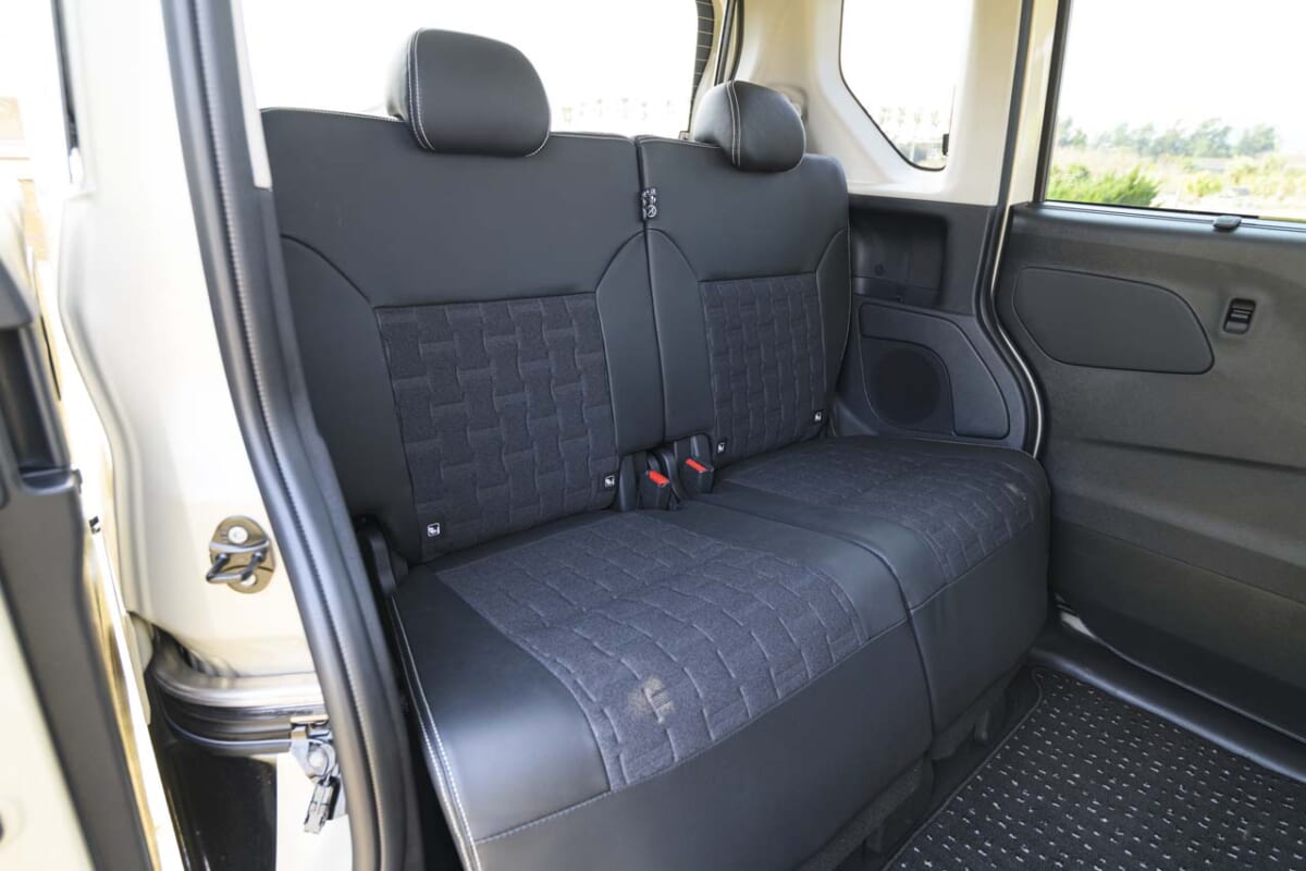 一方で内装は黒を基調としており、基本的には従来のeKクロス スペースを踏襲したものです。とはいえ、デリカミニとしての独自色を上手に演出できており、運転席からの視界は比較的に高めで、周囲の見通しはかなり良いと言えるでしょう。ただ、ステアリングがチルトするのみでテレスコピックはなし。そのため、若干ハンドルを抱え込むポジションになってしまいました。それでもシートの座面にコシがあり、しっかりとしていることから疲れは感じないで済みそうです。