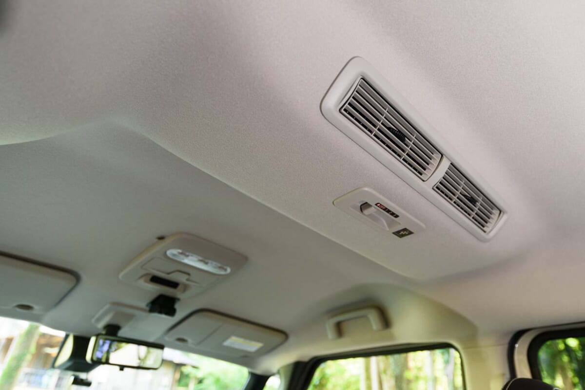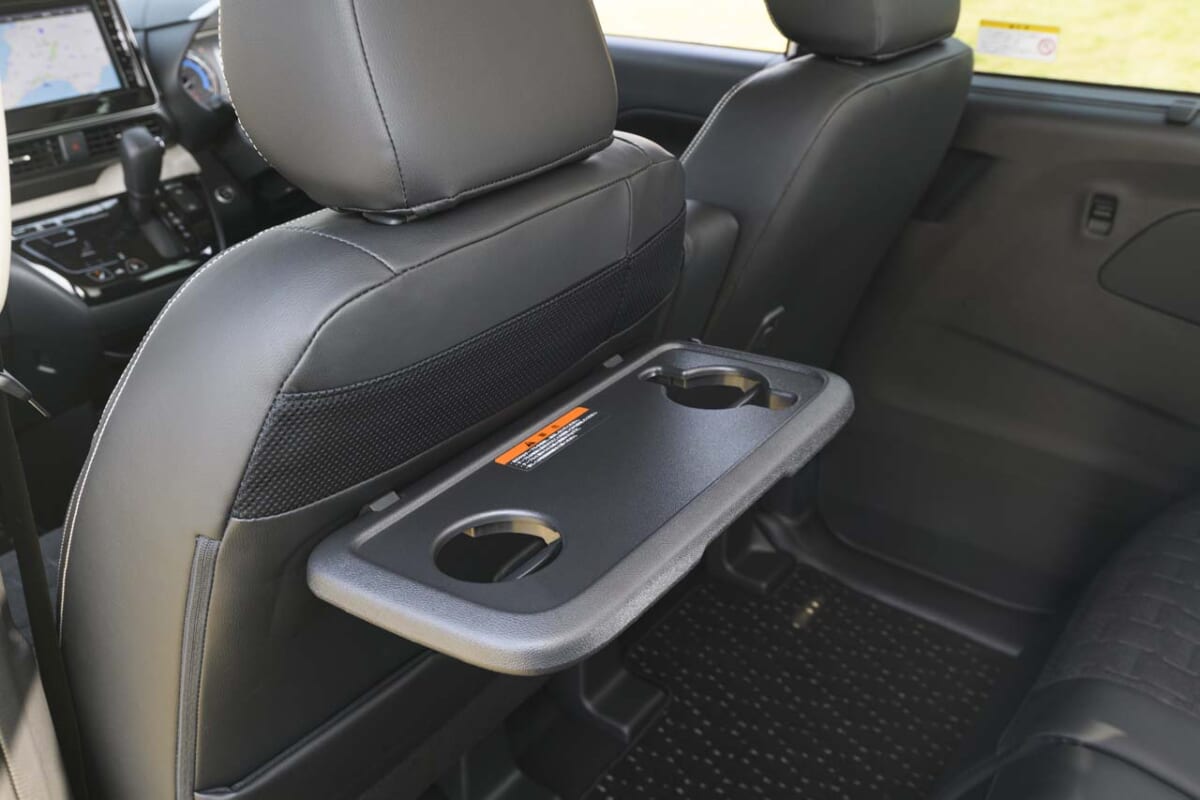 レジャーを意識した装備も豊富です。たとえば寒い季節にありがたいステアリングヒーターは新装備されたもので、しかも全周囲を対象とする優れもの。また、天井に設けられたサーキュレーターはエアコンの効きを均一化できるほか、リアサイドウィンドウのロールサンシェードや助手席シートバックの折りたたみ式テーブル、さらにはUSB端子も装備されるなど、後席でも快適に過ごせるようさまざまな工夫が施されています。さらに、リアシートは320mmもスライドでき、出掛けた先でいろいろな活用法が見出せることでしょう。
