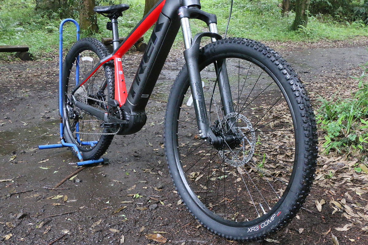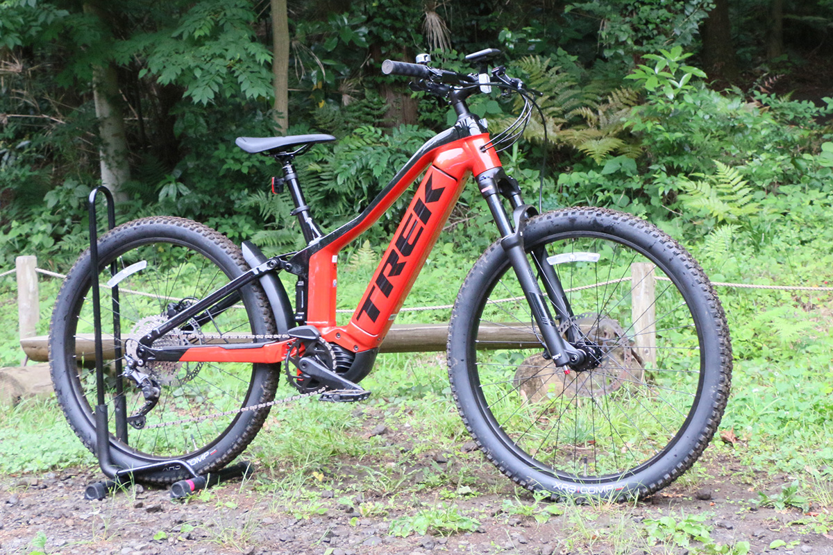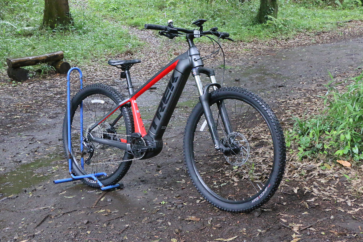 今回The smart systemに対応したe-MTBで専用コースを試乗。用意されていたのはトレックのe-MTB4車種でした。ハードテイルと呼ばれるフロントのみにサスペンションを搭載した「Powerfly(パワーフライ) 4 Gen 4」と、前後にサスペンションを装備する“フルサス”と呼ばれるタイプの「Powerfly FS 4 Gen 3」、「Rail(レイル) 5 Gen 3」、「Rail 9.7 Gen 4」の4モデルです。ドライブユニットはすべてPerformance Line CXを搭載しています。