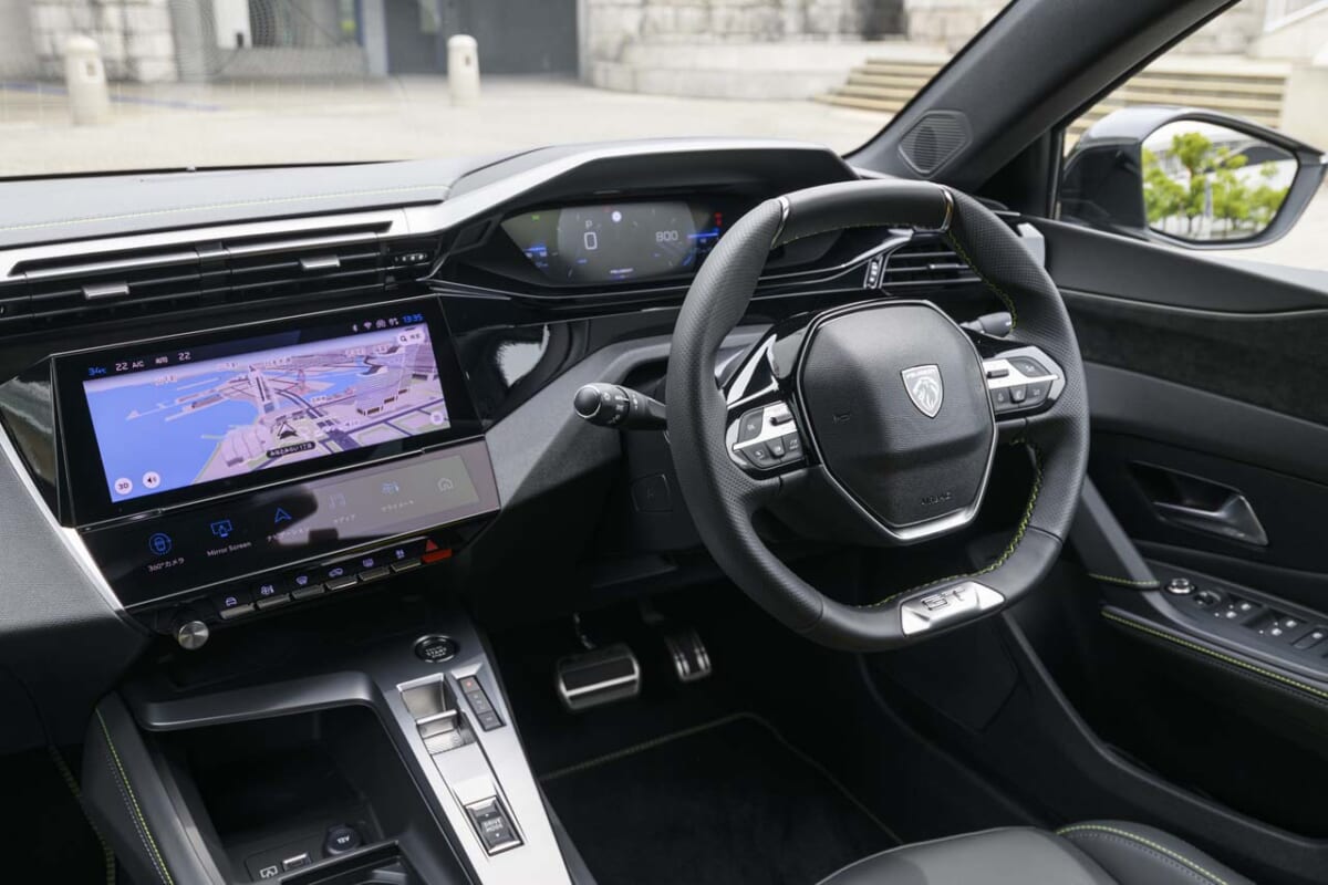小径ステアリング越しに見るメーターからセンターコンソールに至るダッシュボードは、ドライバーを囲むコックピット感が満載。スポーティさも十分に感じられ、この雰囲気作りは「さすがフランス車!」と思える仕上がりレベルです。