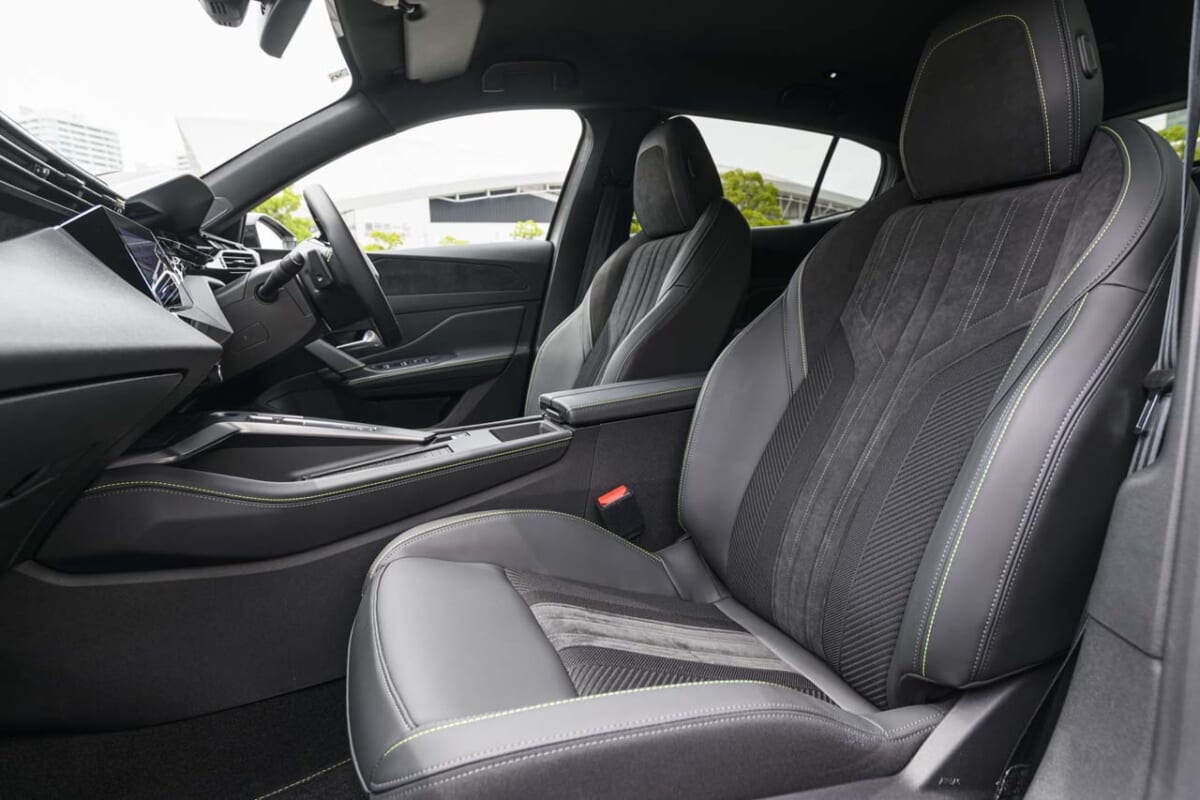 インテリアは、ダッシュボードやシートなど基本デザインを308と共通のものとしています。ただ、驚くのはその品質レベルの高さで、レザーやスエード、ソフトパッドを場所によって巧みに使い分けており、その仕上がり感はCセグメントでもトップクラスにあるといって間違いありません。