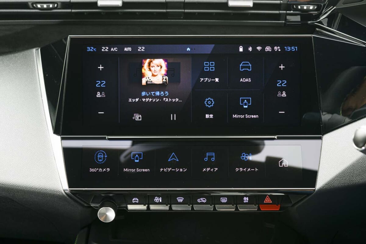 ただ、インターフェースはイマイチの印象です。空調系は物理スイッチで操作感が伝わってくるものなのに、インフォテイメント系は完全なタッチパネル。それでいて押したときに何の反応もないのは要改善だと思いました。ハザードスイッチも用途を考えたら、空調スイッチと並べずに独立させるべきでしょう。